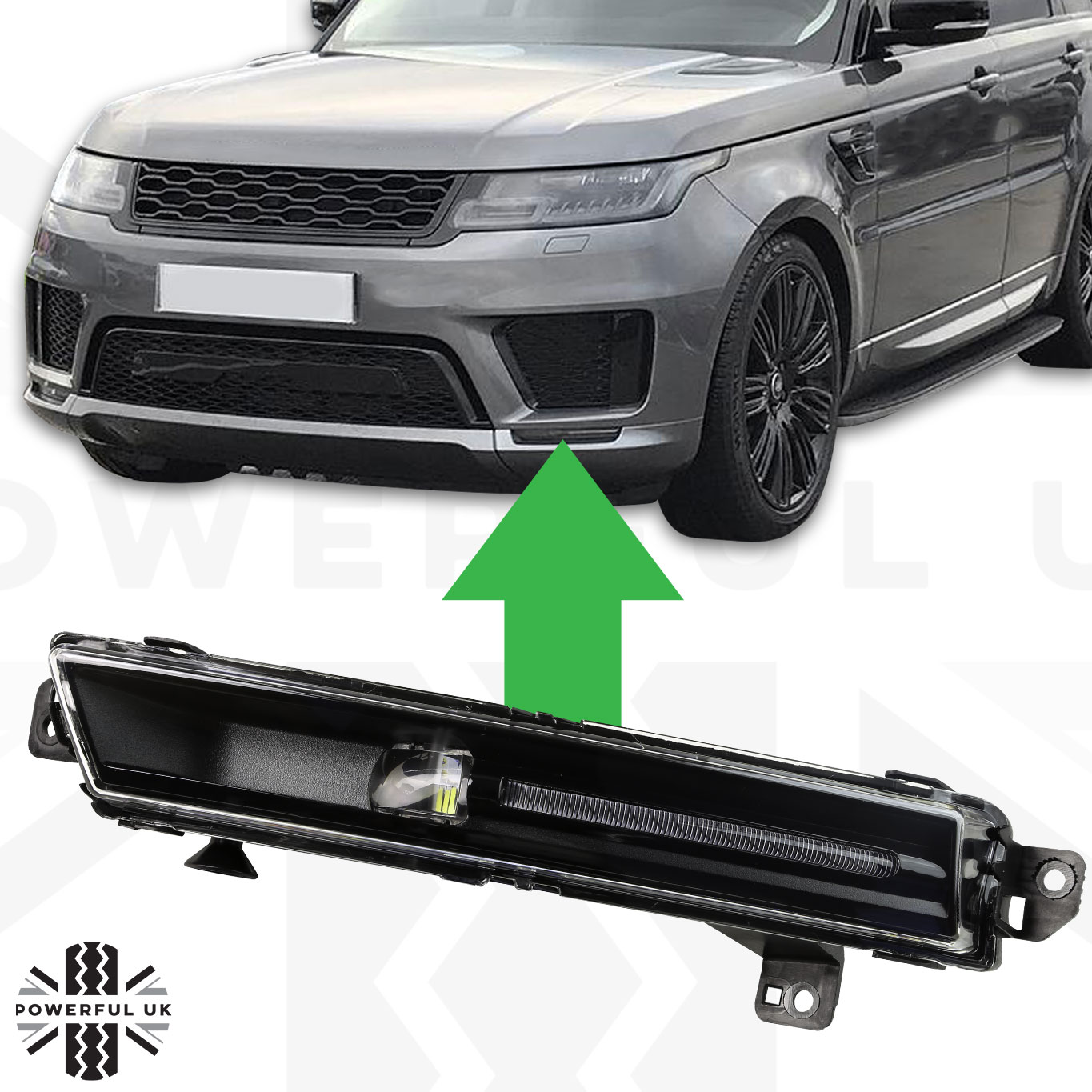 These lamps fit into the front bumper of the Range Rover Sport L494 facelift model which was introduced in 2018.
