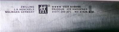 This auction is for a Zwilling J. A. Henkel's 31071-200 chef's knife with an 8" no stain blade in very good condition, some blade scratches noted.