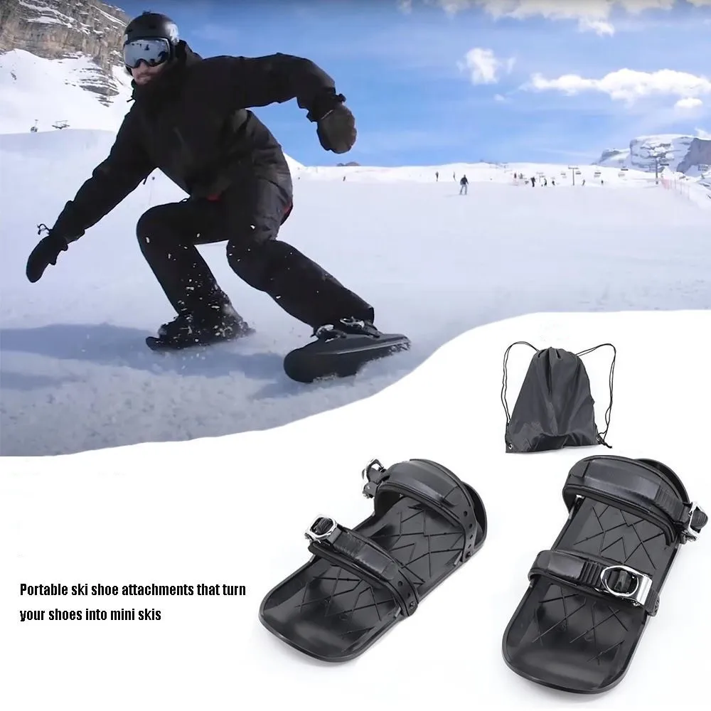 2. Portable and Convenient: Our skis boots skiboards are designed to be easily portable and convenient. They can fit into any bag, allowing you to carry them effortlessly. No need for bulky ski boots or other expensive equipment. Simply attach these mini ski boots to your shoes or boots, and you're ready to hit the slopes or glide on the ice. Perfect for skiing, snow parks, hiking trips, local hills, and backyard fun, these mini ski boots offer endless opportunities for outdoor enjoyment.