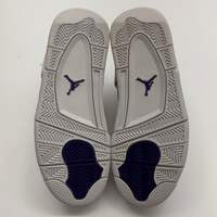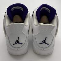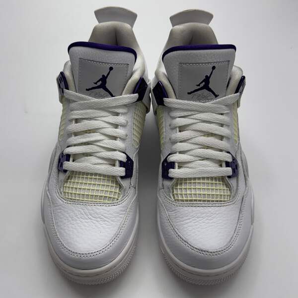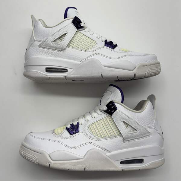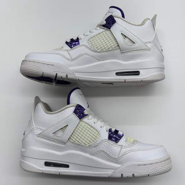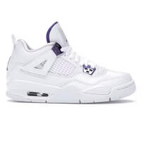 The Jordan 4 Retro Metallic Purple (GS) delivers iconic style with a premium twist. This grade school-sized silhouette features a clean white leather upper accented by striking Court Purple and Metallic Silver details, creating a sophisticated colorway that stands out in any collection. Released in May 2020, this retro brings timeless Jordan Brand heritage to younger sneaker enthusiasts.