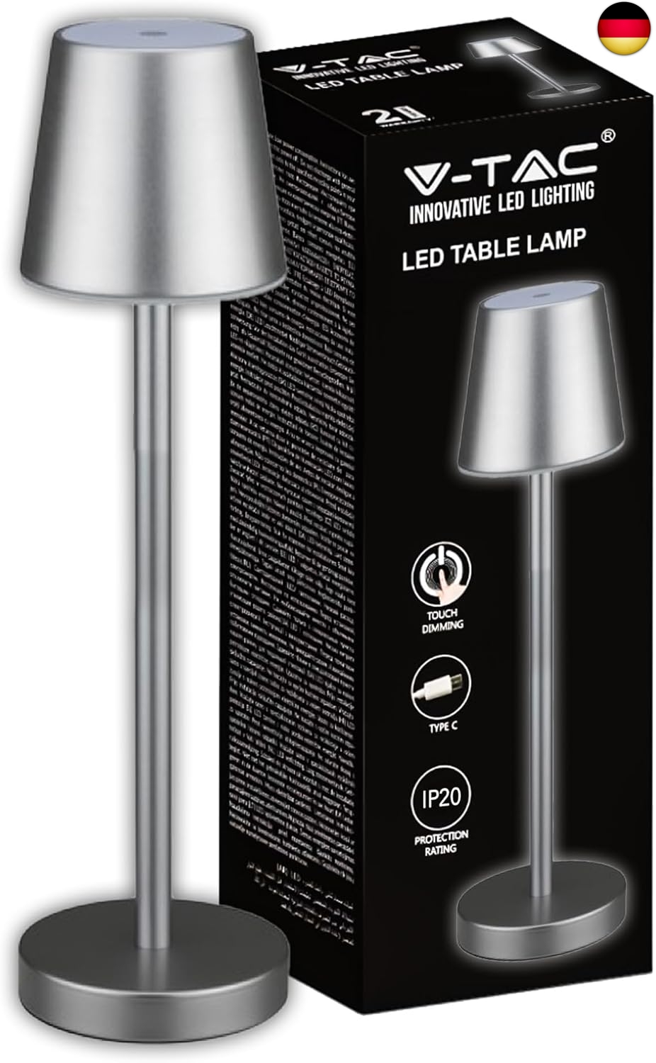 V-TAC LED Tischlampe 3W Akku wiederaufladbar Farbe grau USB C Touch Dimmbar 4000K Restaurant Tischlampe für Innen IP20-10188