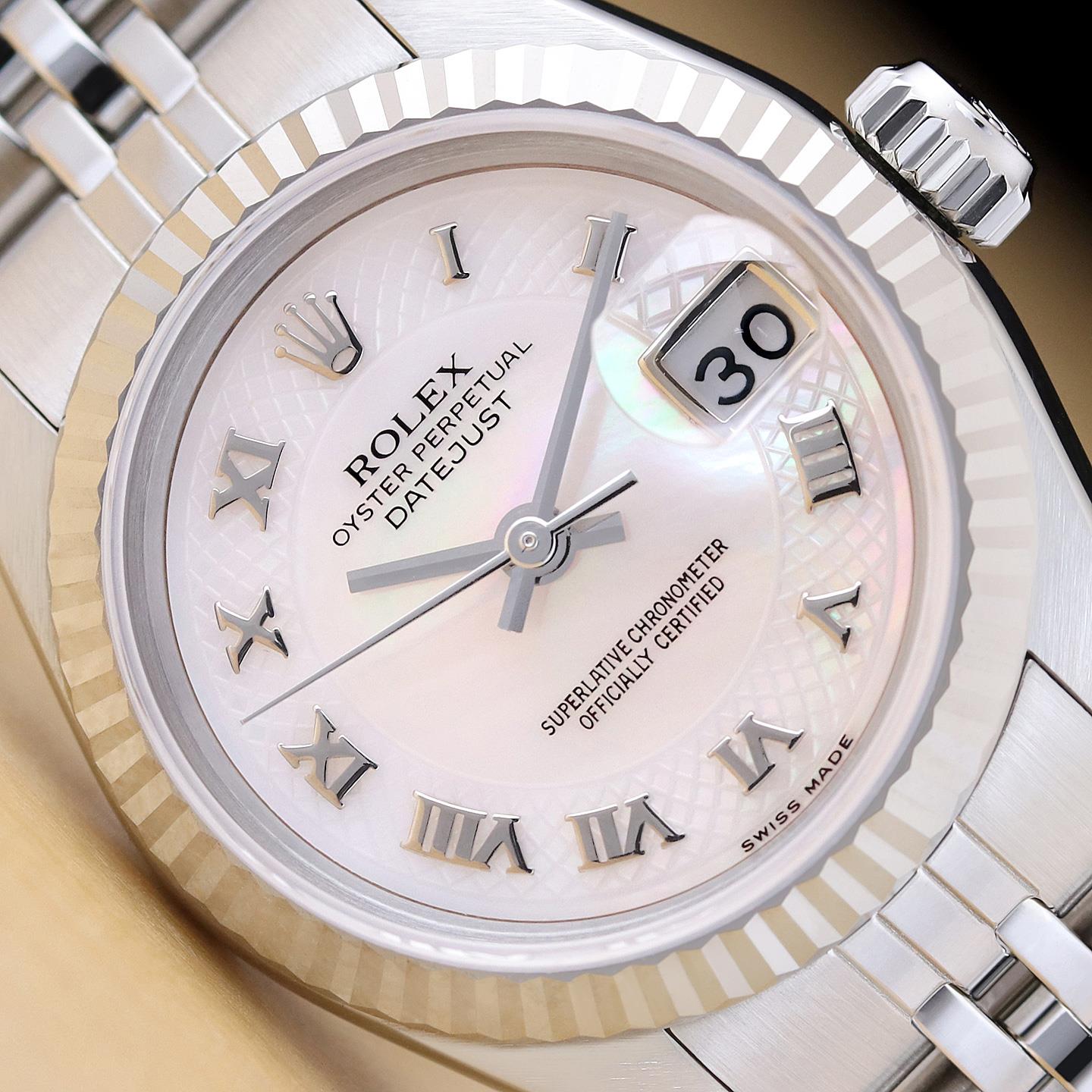 ROLEX LADIES DATEJUST 69174 MOTHER OF PEARL ROMAN DIAL 18K GOLD STEEL WATCH