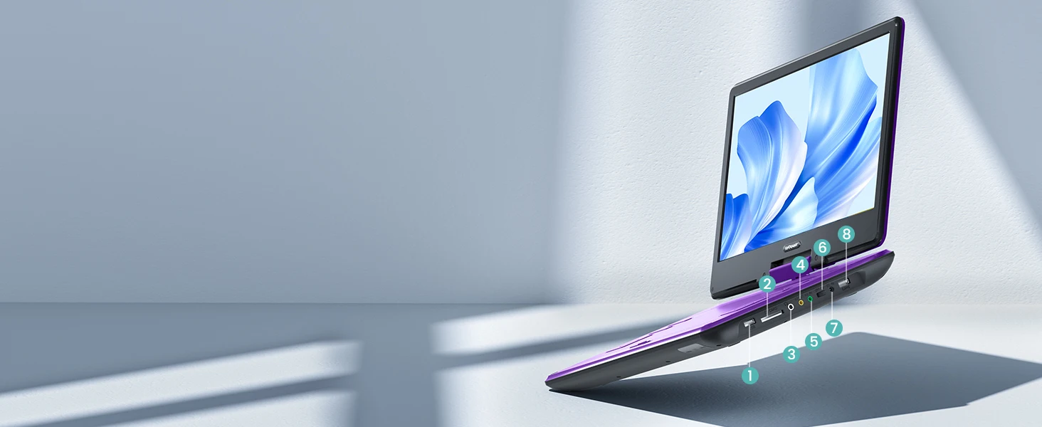 💜【Unique Color, Upgraded Size】--This purple look allows you to find your new style in 2023. Out or in-home, it is a wonderful decoration for your life. When watching episodes, you'll immerse yourself into a whole new world on this 14.1'' 1280*800 high-resolution screen. Thanks to the 270° rotation and 180° flip feature, you can swivel the screen at the angle you wish.