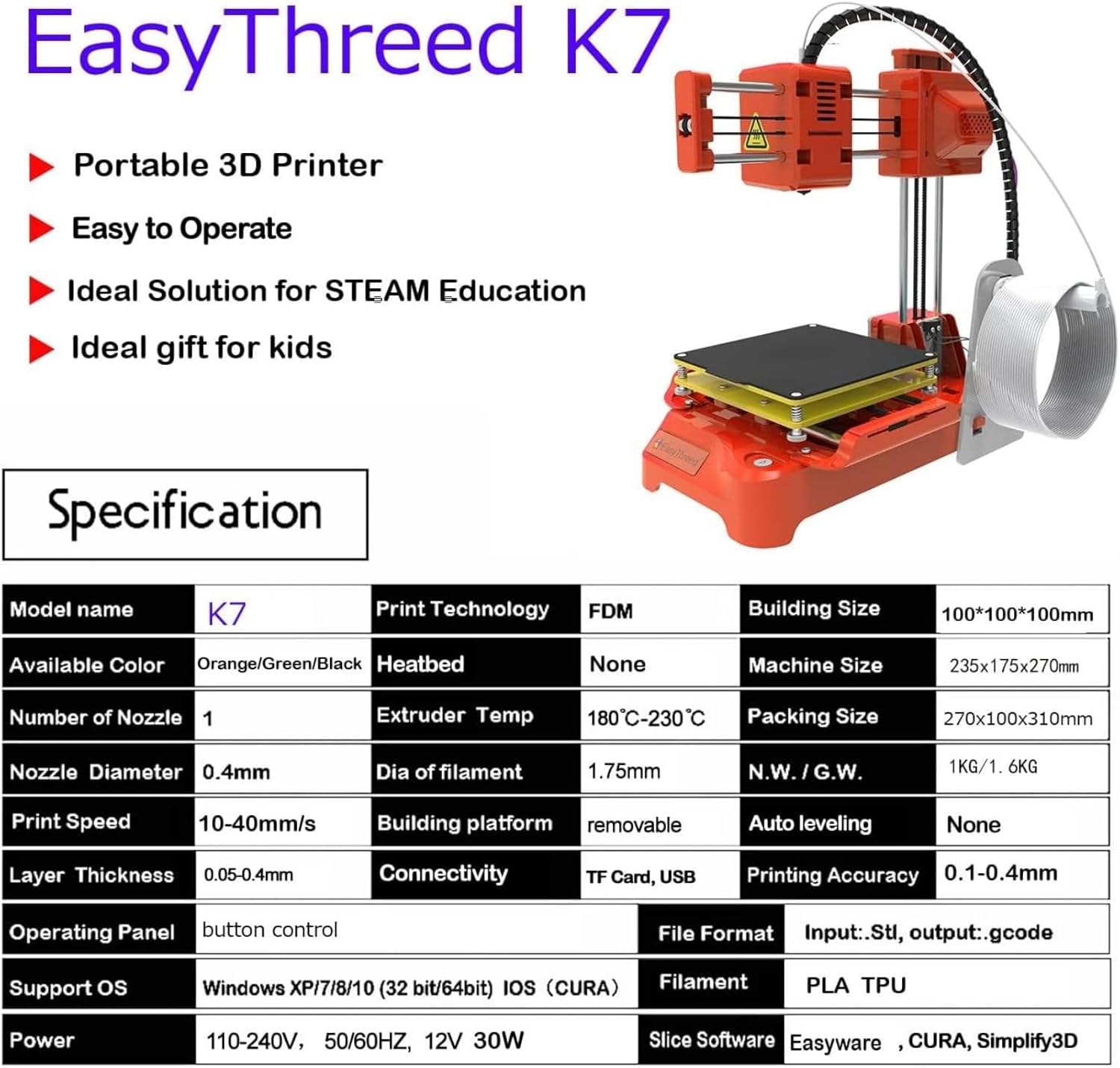 Featuring an intuitive joystick controller and easy-leveling nut, the offers a hassle-free printing experience. Compatible with Windows and iOS slicing software like CURA and Easyware.