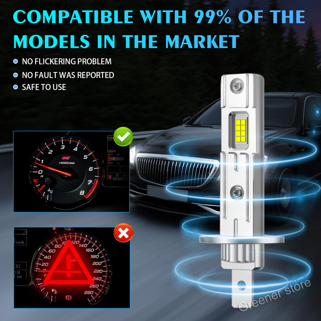 · Fit for 99% Vehicle: Built-in intelligent upgraded IC driver, Can bus-ready, No Radio Interference, No Error, No Lights Flashing. Marsauto H1 led bulb is compatible with H1 or daytime running lights