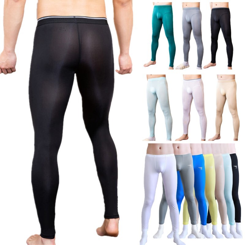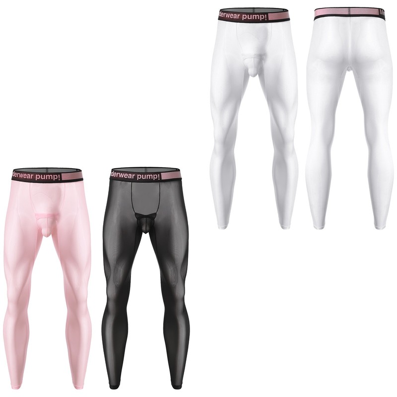 Designed with high waist, elastic waistband, glossy surface, footed stockings and solid color, the leggings for men is perfect for yoga.