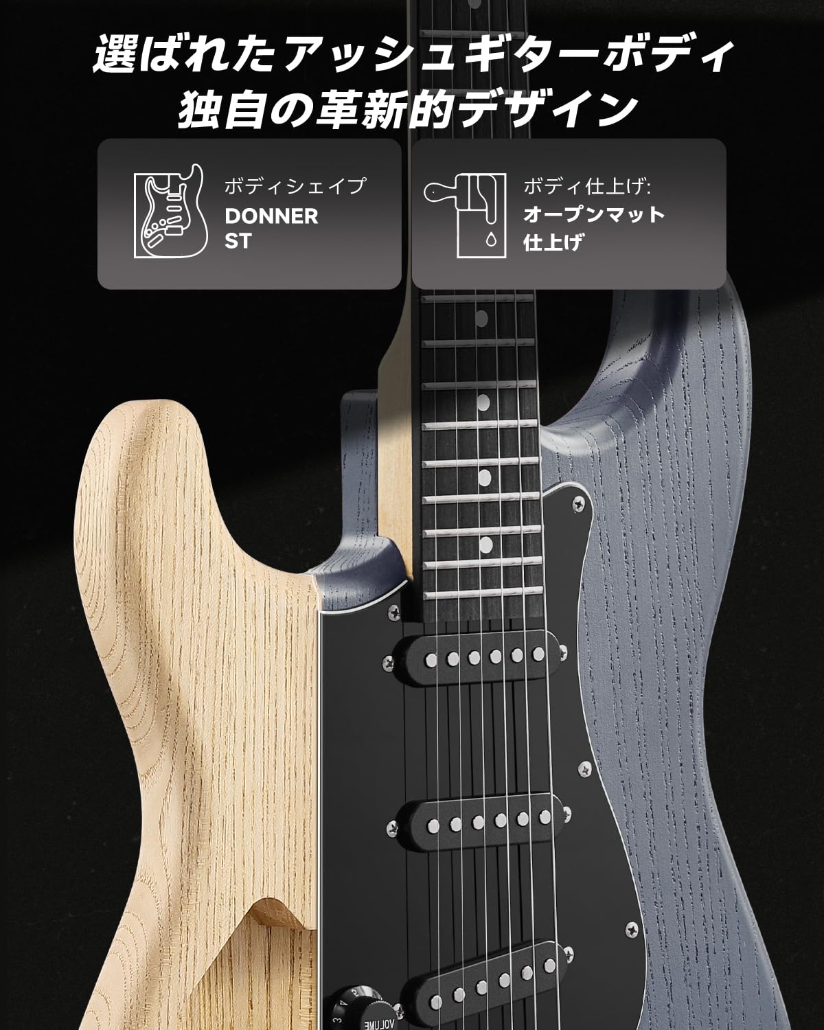 [Luxurious Design] The DST-80 electric guitar features a matte finish Asian ash wood and a vintage tremolo bridge, combining beautiful wood grain with excellent durability.
