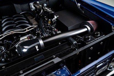 This 1976 Ford Bronco is a Velocity Signature Series build that retains the unmistakable character of a first-generation Bronco while removing the compromises that once defined the driving experience. Finished in Swatters Blue with OE-style chrome accents throughout, the presentation blends classic design with a more modern edge, enhanced by the depth of the metallic finish and a stance that feels deliberate rather than lifted for effect. It rides on 17" alloy wheels wrapped in 285/70R17 BFGoodrich All-Terrain KO2 tires and benefits from LED lighting throughout, including retro-style headlights that maintain an old-school look while improving visibility. Protective Raptor lining on the undercarriage, floors, and tailgate interior reflects a build designed for real use, not just visual impact. Power comes from a brand-new Ford 5.0L Gen III Coyote V8 paired with a 10R80 ten-speed automatic transmission, Atlas transfer case, Dana 44 front axle, and Ford 9" rear with 3.50 gears and limited slip. A Velocity-exclusive frame engineered by Roadster Shop, combined with Bilstein shocks, a 2.5" suspension lift, power steering, and hydroboost-assisted Wilwood four-wheel disc brakes, gives the Bronco a composed, modern feel on the road. Inside, the Hickory marine-grade vinyl interior with double diamond perforation balances durability with comfort, supported by Vintage Air climate control, Dakota Digital gauges, a classic wood-rim steering wheel, and a Bluetooth audio system with Focal speakers and subwoofer. Backed by Velocity's two-year bumper-to-bumper warranty, this Bronco delivers classic appeal with modern reliability and is built to be enjoyed without reservation.