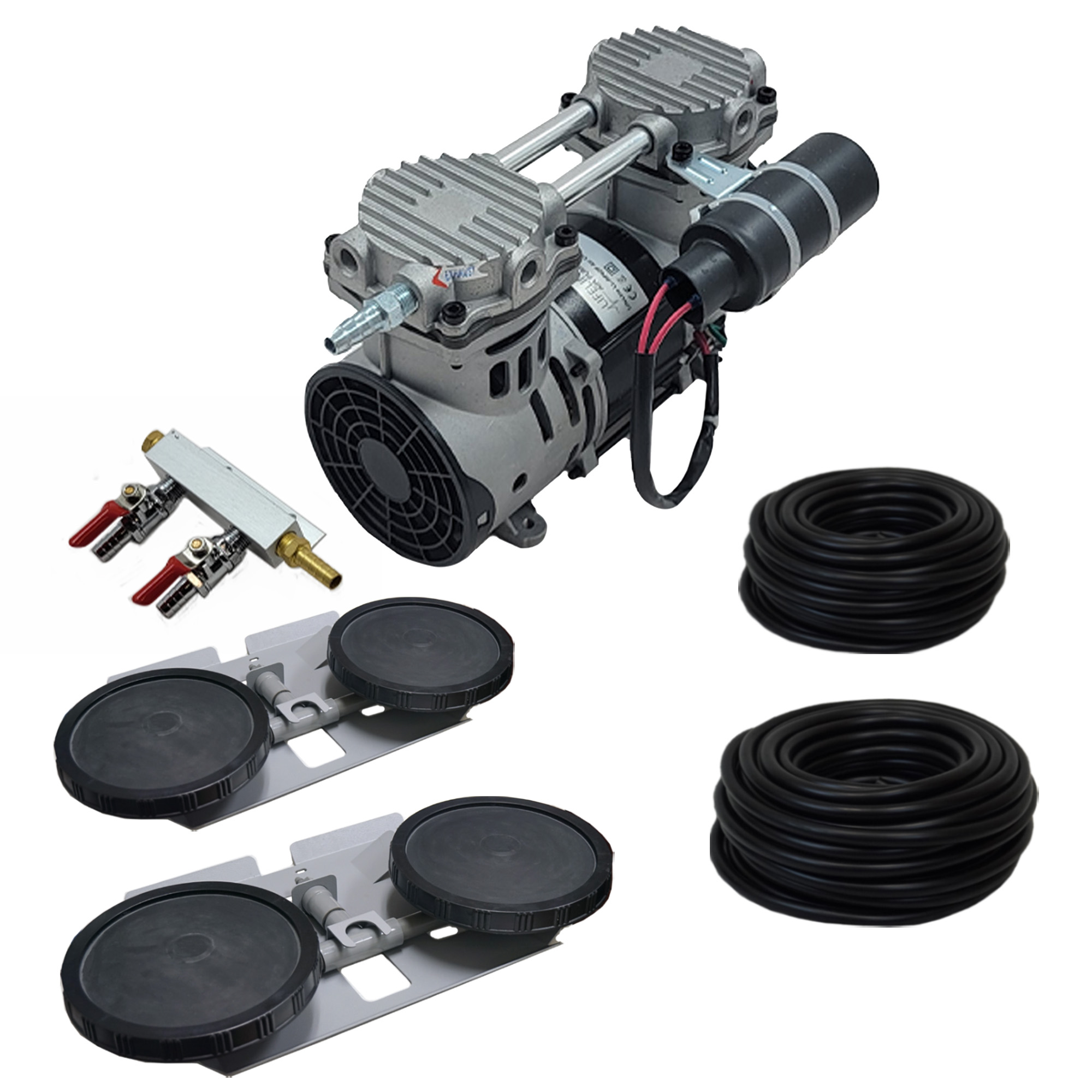 The Half Off Ponds Aeration Compressors are high flow, high capacity air compressors ideally suited for lake and pond bottom aeration. Half Off Ponds Air Compressors operate on a 120-volt, 3.5-amp motor with a 6-foot double insulated power cord and are most efficient in 25-foot water depths, with a maximum operating depth of 40 feet.