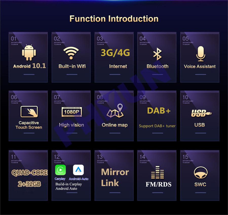 | Support Carplay/Android Auto | -Support Build-In WIFI Wireless And USB Wired Carplay,USB WiredAndroid Auto. |