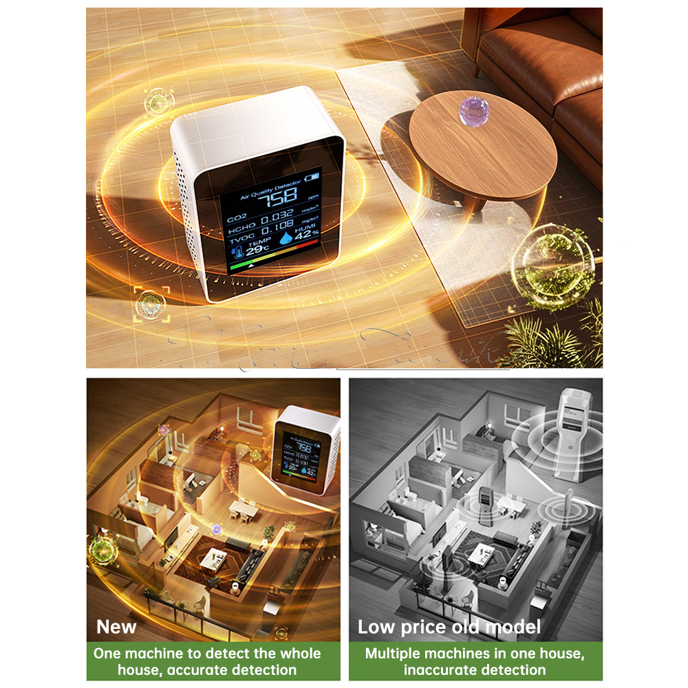 5 in 1 Air Quality Monitor HCHO/TVOC/ CO2 /Temp/Humidity Carbon Dioxide Detector