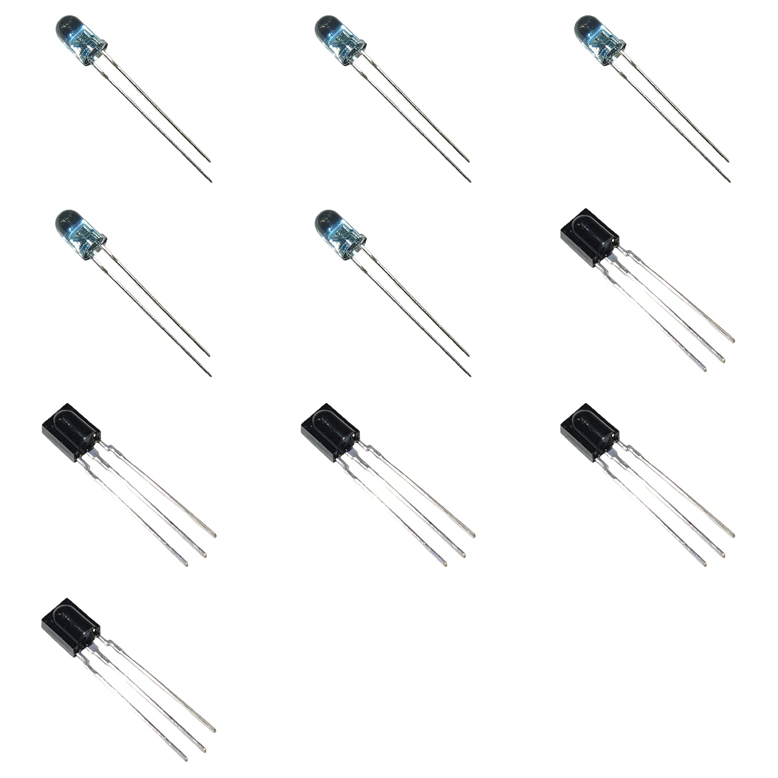 The TSOP38238 is miniaturized receivers for infrared remote control systems. A PIN diode and a preamplifier are assembled on a lead frame, acts as an IR filter.TSAL6200 is an infrared, 940 nm emitting diode in GaAlAs/GaAs technology with high radiant power molded in a plastic package.Package Including10pcs(5pcs*TSOP38238+5pcs*TSAL6200)