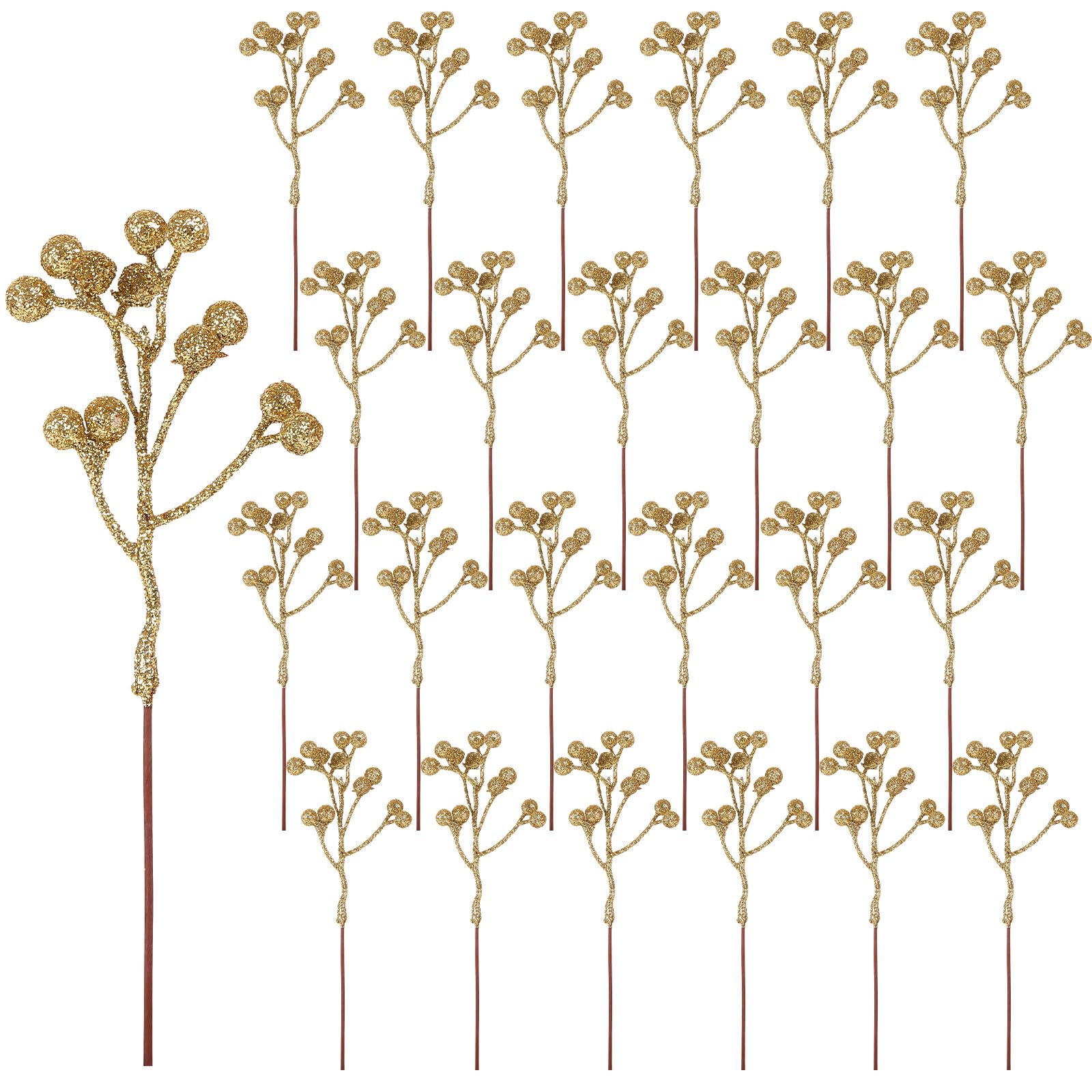 CCINEE 24 Pack Christmas Artificial Gold Berry Stems,6.9 Inch Xmas