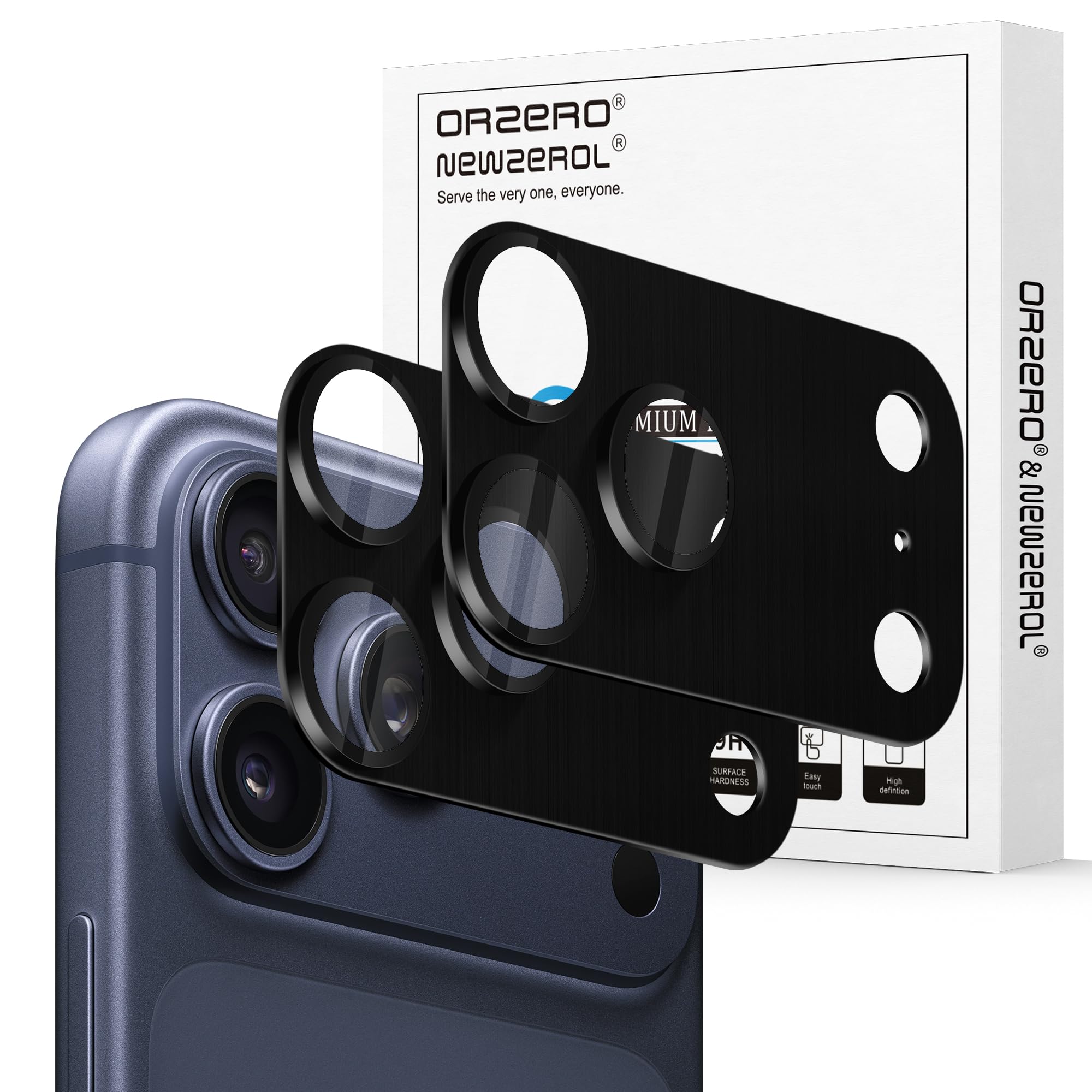 (2 Pack) Orzero Camera Lens Protector Compatible for iPhone 17 Pro, Potector de Cámera Premium Brushed Aluminum Alloy and Tempered Glass Precise Camera Cutouts Anti-Scratch - Black
