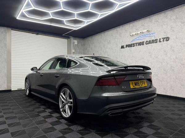 MOT 16 JAN 2027 / ROAD TAX £215 / 2 SERVICES / 2 KEYS Navigation SD CardParking Sensor(s)Climate ControlLeather TrimTemporary Spare Wheel20'' Alloy WheelsThis vehicle comes fully prepared and ready to drive away, giving you complete peace of mind:Fresh Service CompletedMinimum 6 Months MOT3 Months Warranty Included (extendable)12 Months Nationwide Breakdown CoverComprehensive Mechanical Health CheckFinance Available at Very Competitive Rates Instant decision within 30 secondsThis 2016 Audi A7 TDI V6 S line boasts a clear vehicle history, offering you peace of mind. This striking example features the desirable S line trim, powered by a robust 3.0 litre diesel engine and equipped with Audi's renowned four wheel drive system for confident handling in all conditions. It meets Euro 6 emissions standards. Inside, you'll find electrically adjustable front seats with a memory function for the driver, ensuring your perfect seating position is always remembered. The car also benefits from automatic headlight activation and acoustic and visual parking systems for both the front and rear, making parking manoeuvres simpler and safer.Experience impressive performance with this Audi A7, capable of accelerating from 0 to 60 miles per hour in just 5.5 seconds, a testament to its powerful 3.0 litre diesel engine. This acceleration figure places it ahead of many comparable vehicles. Furthermore, the generous boot space provides ample room for luggage, shopping, or sports equipment, making it a practical choice for everyday life and longer journeys alike.