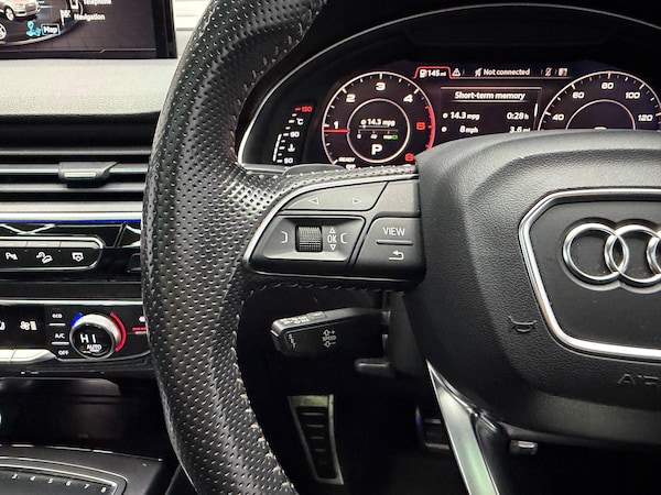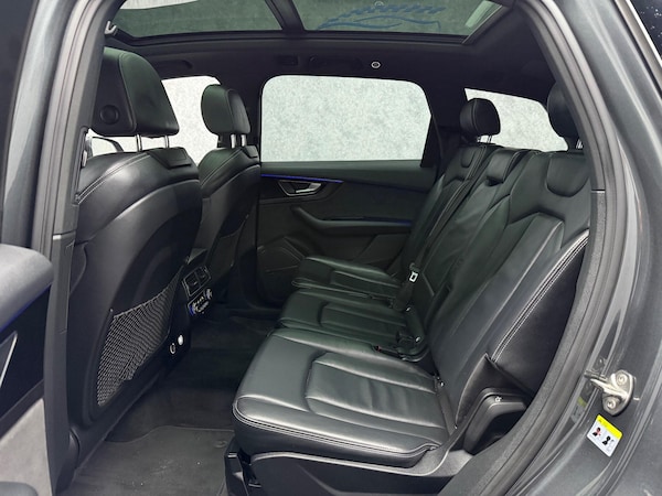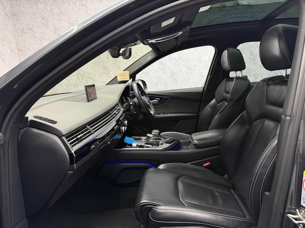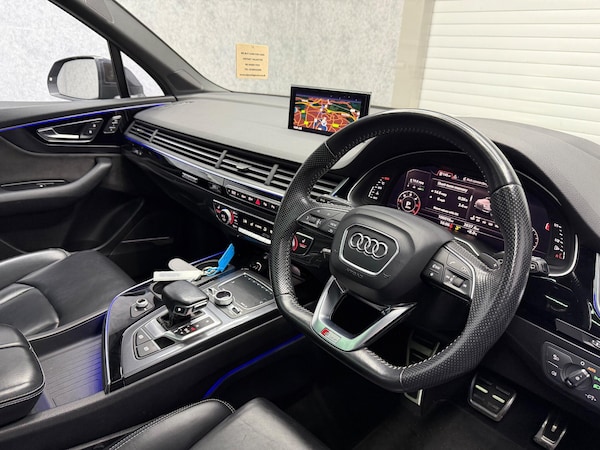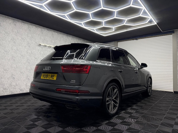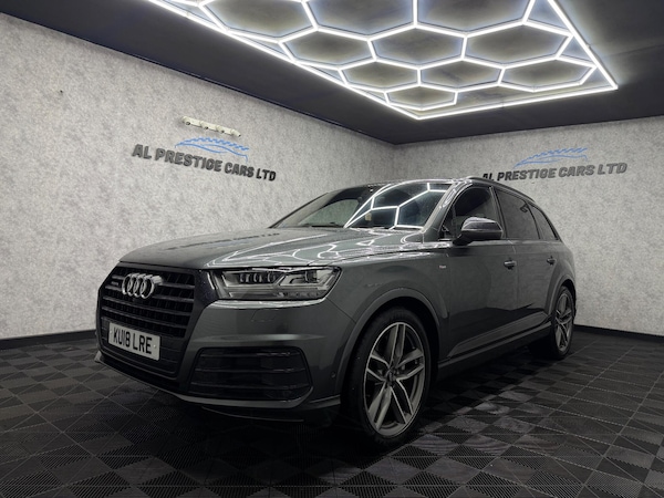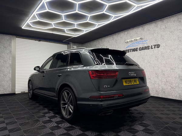 MOT 05 Dec 2026 / ROAD TAX £195 / 7 SERVICES / 2 KEYSNavigation HDDParking Sensor(s)Climate ControlLeather Trim21'' Alloy WheelsPrivacy GlassPanoramic RoofThis vehicle comes fully prepared and ready to drive away, giving you complete peace of mind:Fresh Service CompletedMinimum 6 Months MOT3 Months Warranty Included (extendable)12 Months Nationwide Breakdown CoverComprehensive Mechanical Health CheckFinance Available at Very Competitive Rates Instant decision within 30 secondsThis 2018 Audi Q7 TDI V6 Black Edition offers an exceptional blend of performance and practicality. As a Euro 6 compliant model, this four wheel drive SUV boasts a powerful 3.0 litre diesel engine, capable of accelerating from 0 to 62 miles per hour in just 6.5 seconds. With seating for seven, it is an ideal choice for families or those who require versatile space. The Black Edition trim enhances its sophisticated appearance, while features like the deluxe four zone automatic climate control ensure comfort for all occupants. Parking is made effortless thanks to the rear view camera and Audi Parking System Plus, which includes front and rear sensors.Further enhancing the driving experience, the Light and Rain Sensor automatically adjusts headlights, which are also LED with dynamic rear indicators and high beam assist for optimal visibility. This Q7 also benefits from a low insurance group, making it an economical choice to own and run. Its impressive towing weight of 3500 kg means it is well equipped for carrying substantial loads or towing a caravan or trailer. These combined attributes demonstrate how this Audi Q7 stands out from other vehicles in its class, offering a superior combination of luxury, capability, and efficiency.