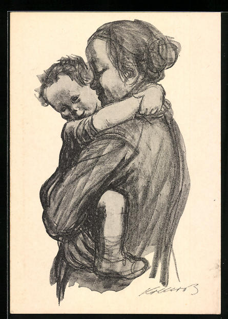 Künstler-AK Käthe Kollwitz: Mutter mit Jungen auf dem Arm