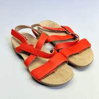 VIONIC Slingback Sandals Raya Adjustable Leather New Sz 8 Medium Condition: New Size: 8M Color: Cherry Tomato Description: Summer is all about vacations, exploring new spots, and attending events. In other words, you'll be on your feet. Be good to those tootsies with these adjustable sandals that are equipped with arch support, textured tread, and a soft microfiber-covered footbed. From Vionic. Style: Raya Adjustable backstrap with hook-and-loop closure Microfiber-covered footbed with Vio Motion technology and arch support Durable rubber outsole with textured tread offers good traction on a variety of surfaces Helps to relieve common causes of heel pain and knee pain, related to over-pronation and flat feet An ideal complementary option for orthotic or arch support wearers, particularly at home on hard flat floors Bottom construction: Rest Approximately 1-1/2"H heel Fit: true to size; recommended 20 to 30 minutes of break-in time for the first few days of wear Leather or man-made upper Imported