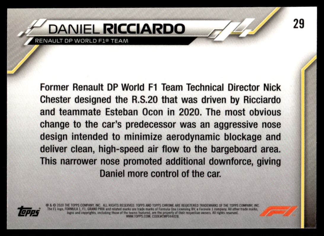 | 2020 Topps Chrome Formula 1 Daniel Ricciardo Renault DP World F1 #29 |