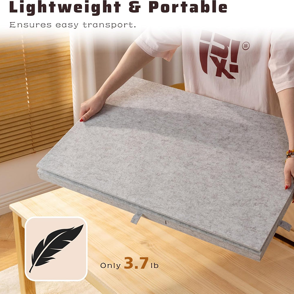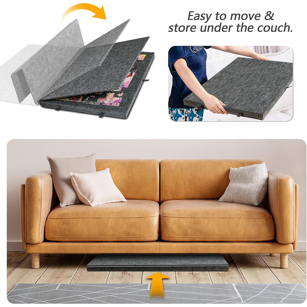 Super Lightweight & Portable - puzzle board is processed out of high quality felt fabric, not easy to bend and featuring a long service life. Also stops puzzle pieces from sliding. Weighs only 3.7 lbs which is lighter than traditional wooden puzzle boards by 30 ~ 50% and easy to move and preserve, especially for the elderly.