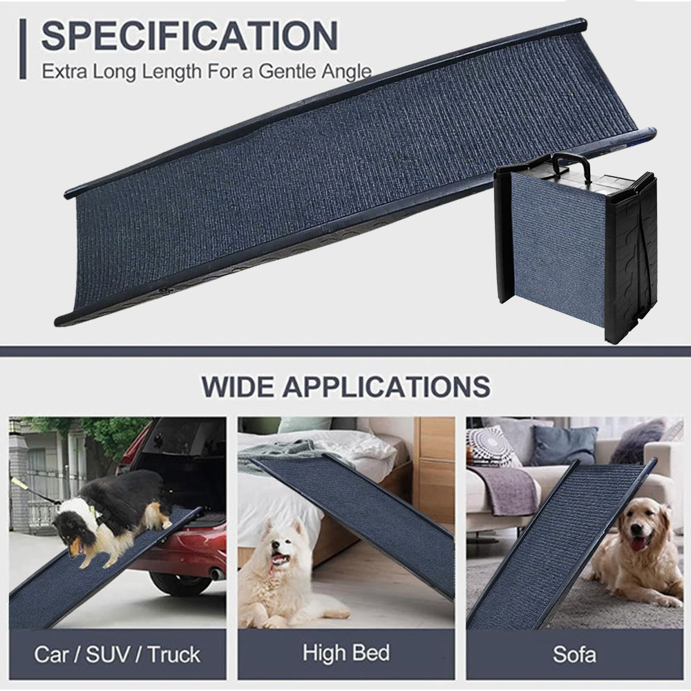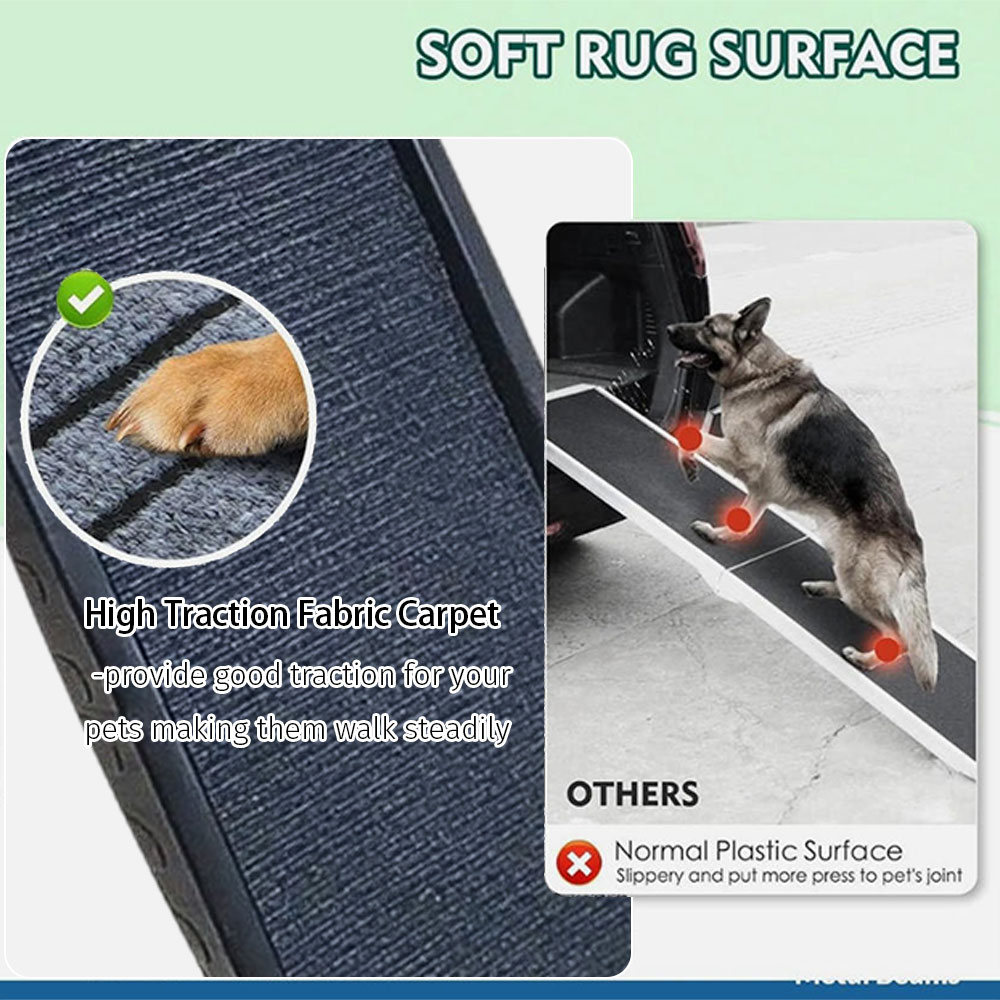 Extra-Long & Gentle Slope: Extends to 151cm in length with a 39cm width, providing a gentle angle that’s safe and comfortable for pets (especially older or injured ones) to climb up and down.