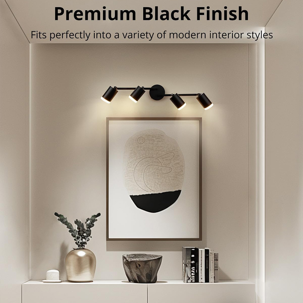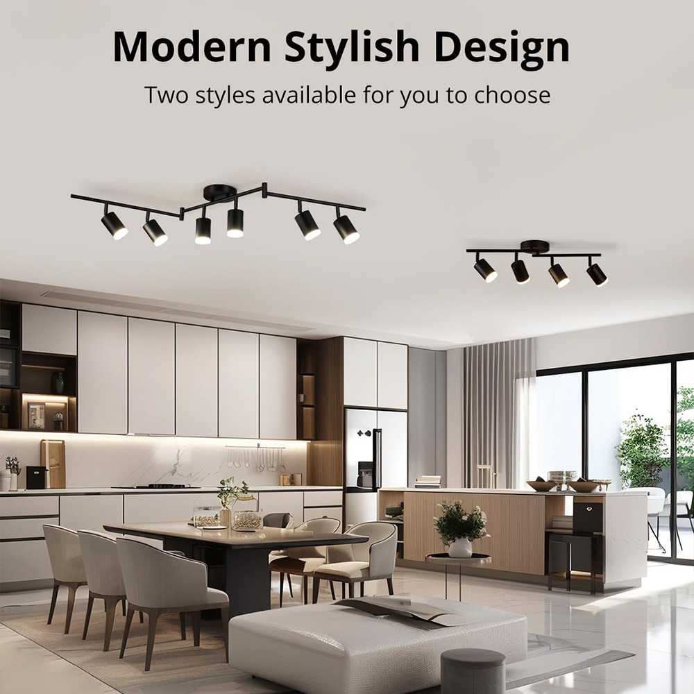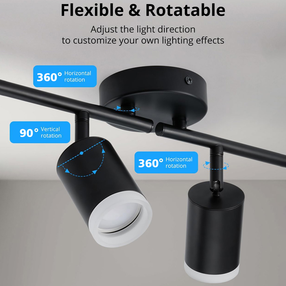 Adjustable and flexible: The LED ceiling lamp head can be rotated vertically by 90° and horizontally by 360°. Two rotating arms with four adjustable lamp heads allow you to customize the direction of the lights, create a personalized lighting effect, and illuminate the desired areas of the room.