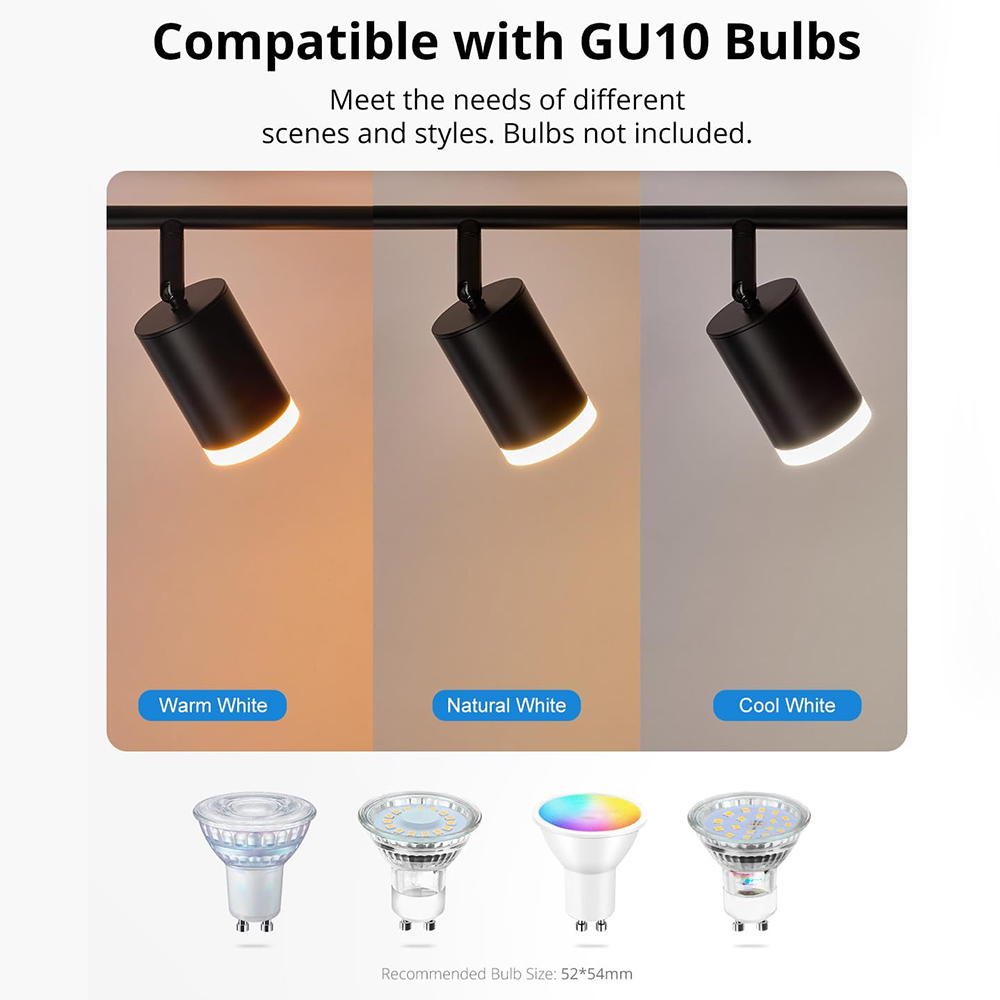 Replaceable GU10 bulb: 4 spotlight ceiling lights can be matched with different types of GU10 bulbs such as monochrome, dimmable and smart light sources according to different scenes. You can choose a suitable light source according to your individual needs to achieve the desired lighting effect. (Bulb not included)