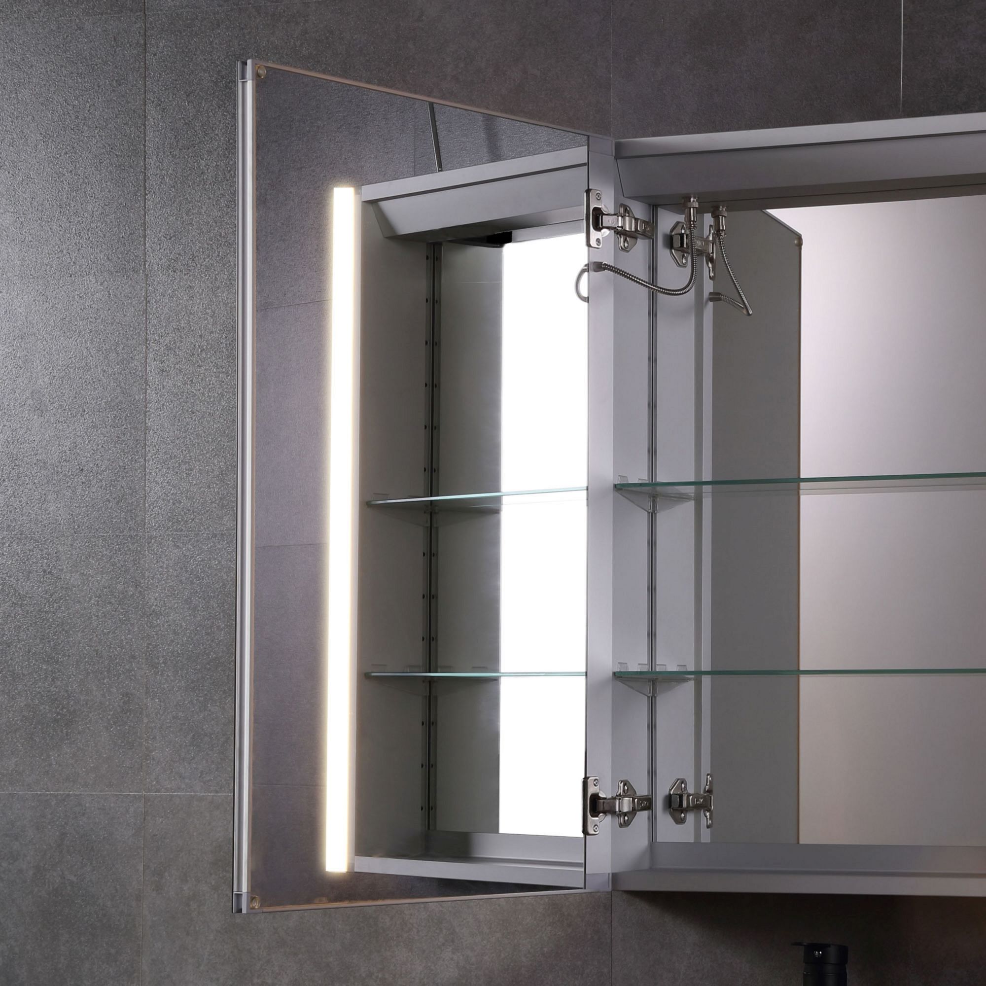 Item DescriptionEnjoy this state-of-the-art single-door smart function medicine cabinet in your bathroom for years to come. It will play your favorite music for you every morning and make sure it doesn't fog up so you can see your beautiful face even as you walk out of the hottest shower. Turn on its bright white LED lights whenever you need that extra bit of light.