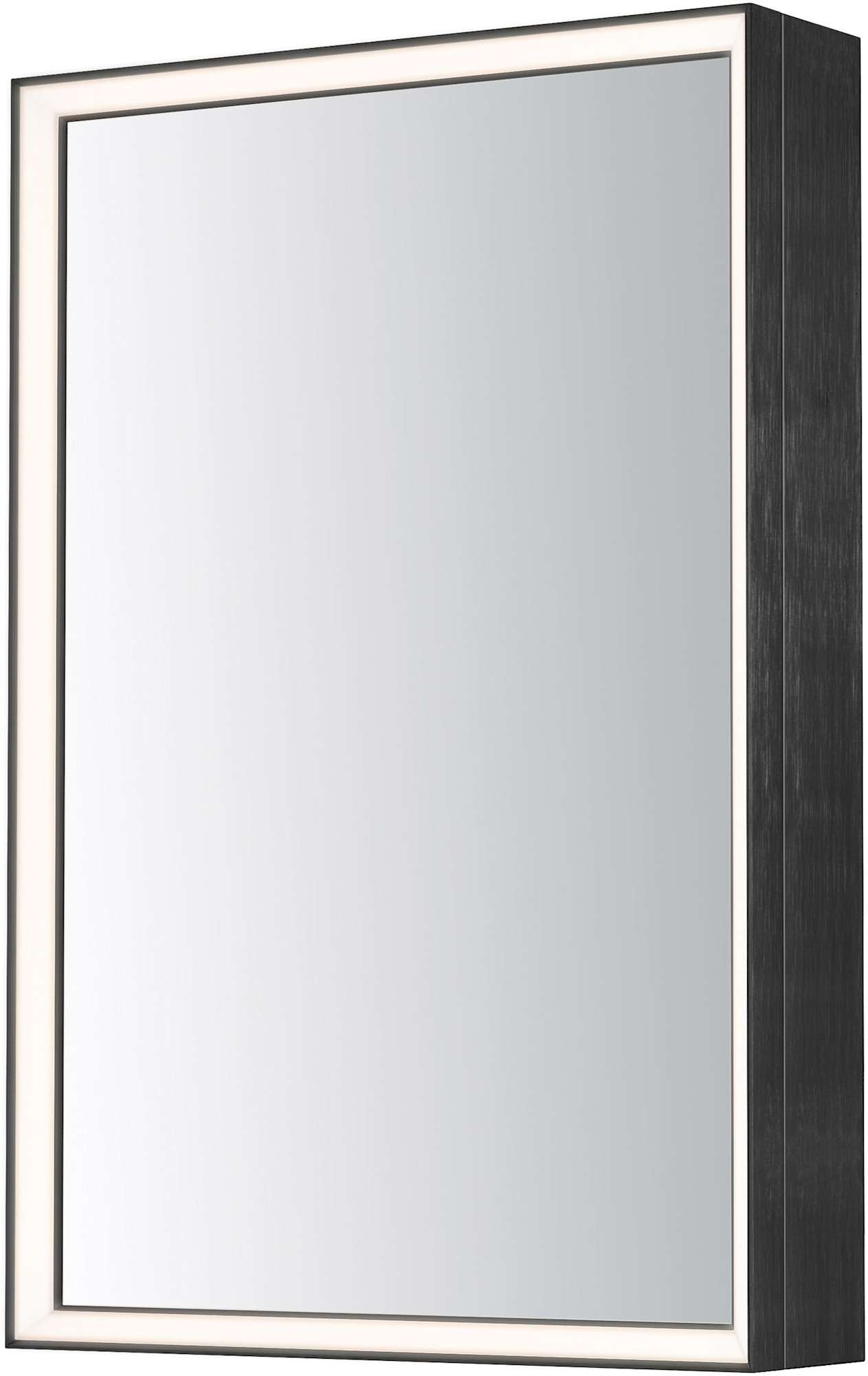 - Mirror is frameless with a bi-fold mirror