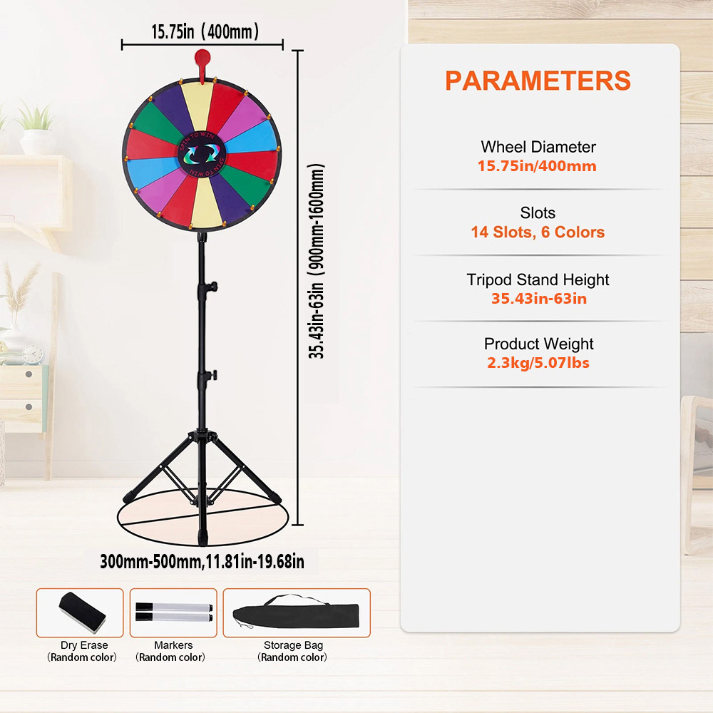 Customizable & Editable: Our prize wheel features 14 customizable slots, allowing you to create personalized games effortlessly. Stand out from the crowd with colorful slots and a smooth, rewritable writing board.