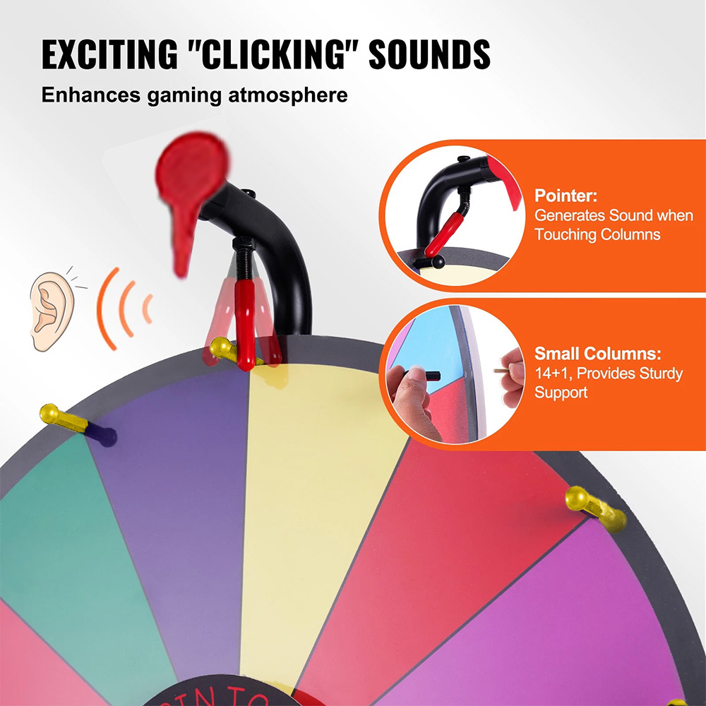 Exciting Atmosphere: Want to liven up your event? Our spinning prize wheel comes with a clicking sound as it spins, adding tension and excitement to the game. Attract attention and create a buzz at your event!