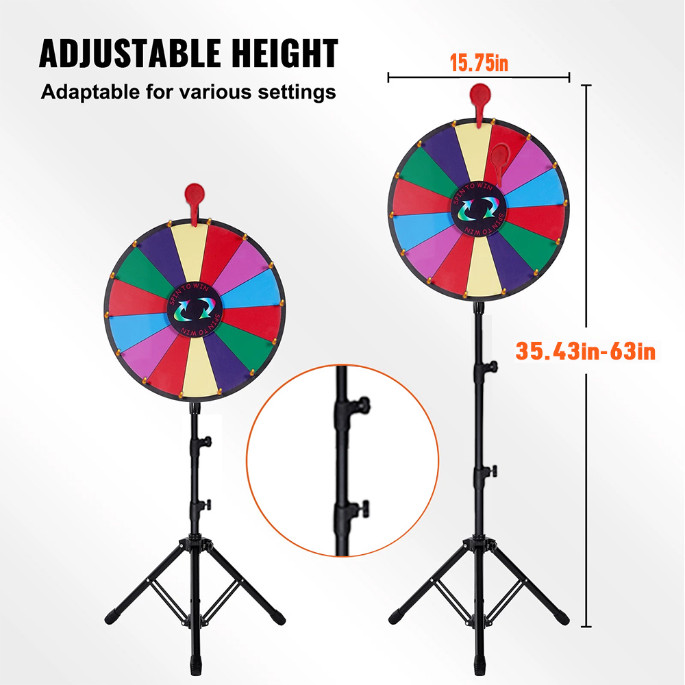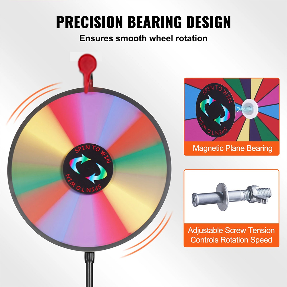 Portable and Space-Saving: Whether in-store or at a trade show, our prize wheel spinner with stand is easy to transport and set up quickly. Its lightweight design and compact storage requirements allow for fun anytime, anywhere.