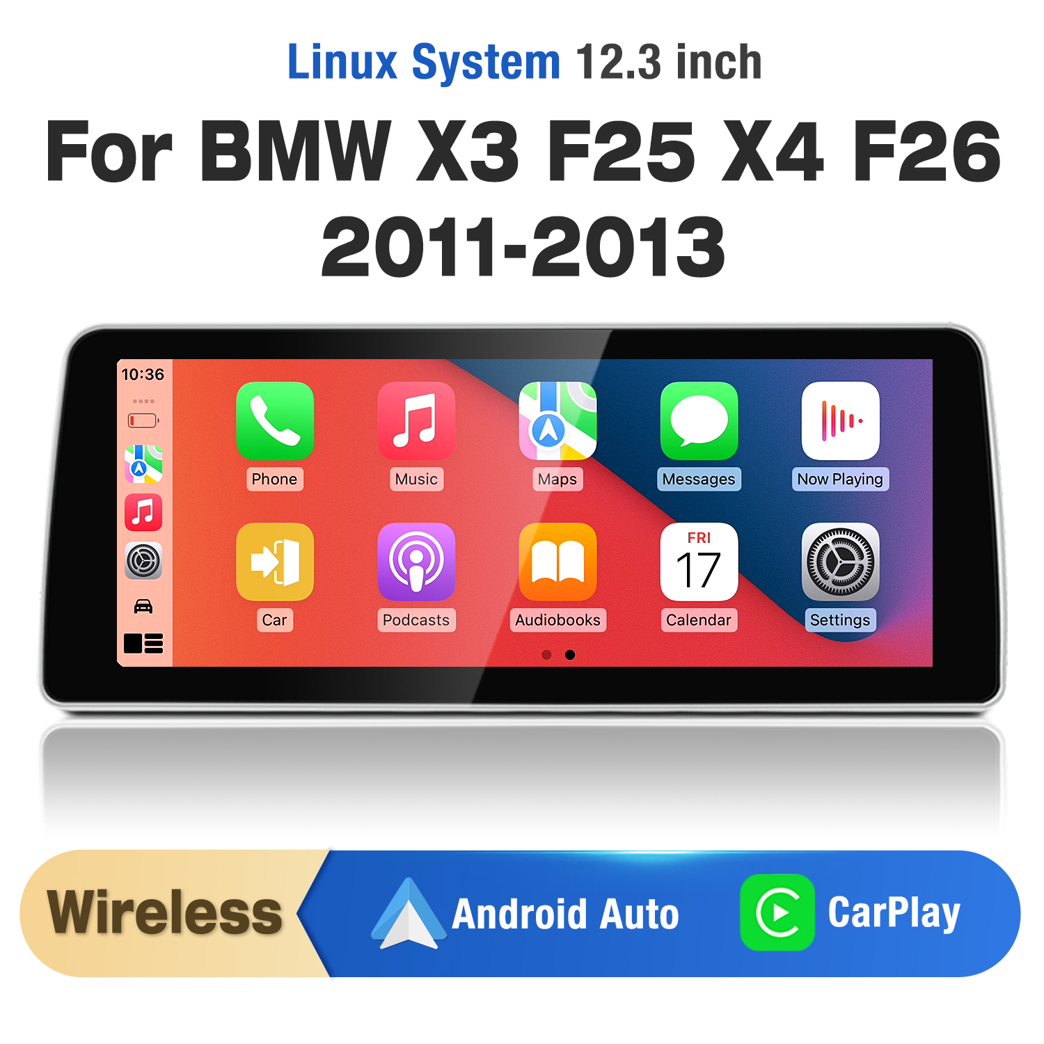 ✅【12.3-inch CarPlay Car Touchscreen for BMW X3 F25 X4 F26 2013-2015 NBT system or No Original Car Display】: This car radio features new technology to replace the original car screen with a 12.3-inch Linux-based touchscreen. It not only retains the original OEM system but also adds wireless CarPlay, wireless Android Auto, and wireless MirrorLink functionality. The 1920*720 HD resolution touchscreen provides a clearer display.
