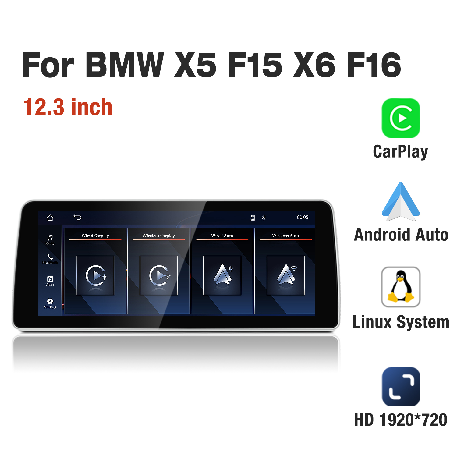 ✅【12.3-inch CarPlay Car Touchscreen for BMW X5 F15 X6 F16 (2014-2017) NBT system or No Original Car Display】: This car radio features new technology to replace the original car screen with a 12.3-inch Linux-based touchscreen. It not only retains the original OEM system but also adds wireless CarPlay, wireless Android Auto, and wireless MirrorLink functionality. The 1920*720 HD resolution touchscreen provides a clearer display.