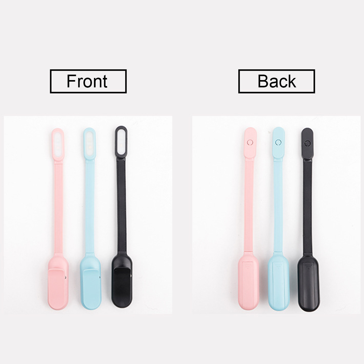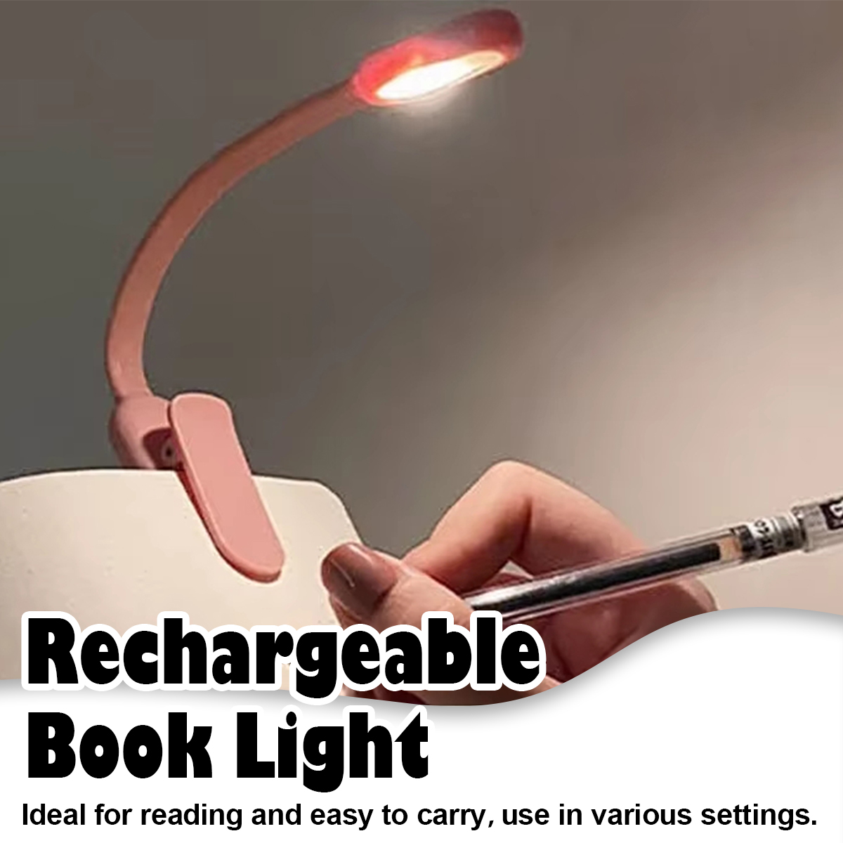 - Battery or USB rechargeable mini LED reading lamp, can stand on desk or clip on book.