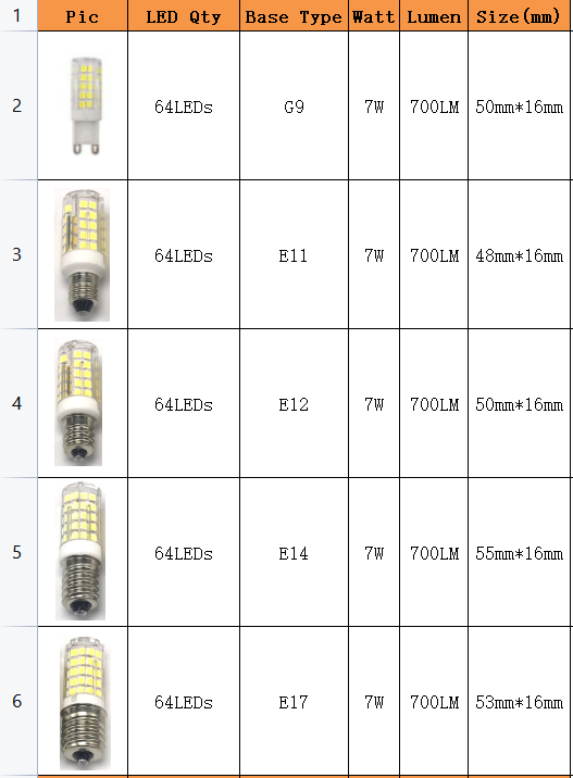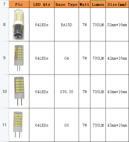 Base Type: G4 / G9 / E14 / E12 /E11 / E17 / G8 / BA15D / GY6.35