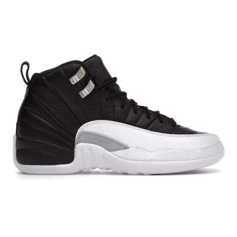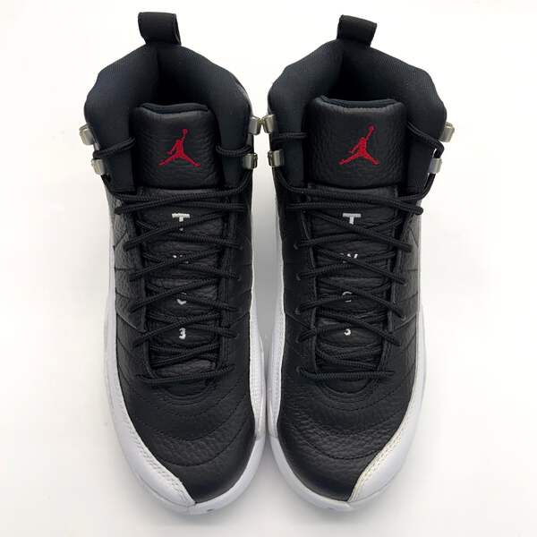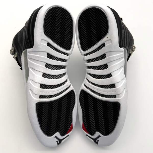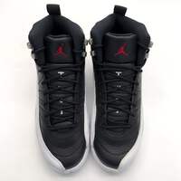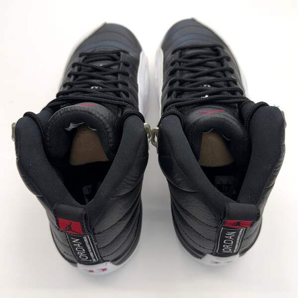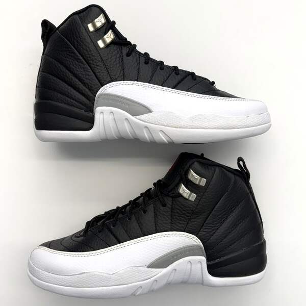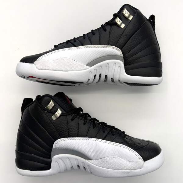 The Jordan 12 'Retro Playoffs' (2022) brings back the iconic silhouette that MJ wore during the legendary 1997 playoff run. This GS-sized release features the classic Black/Varsity Red-White colorway with premium leather construction and signature stitched detailing. Please note this pair shows natural yellowing from age—see photos for exact condition.