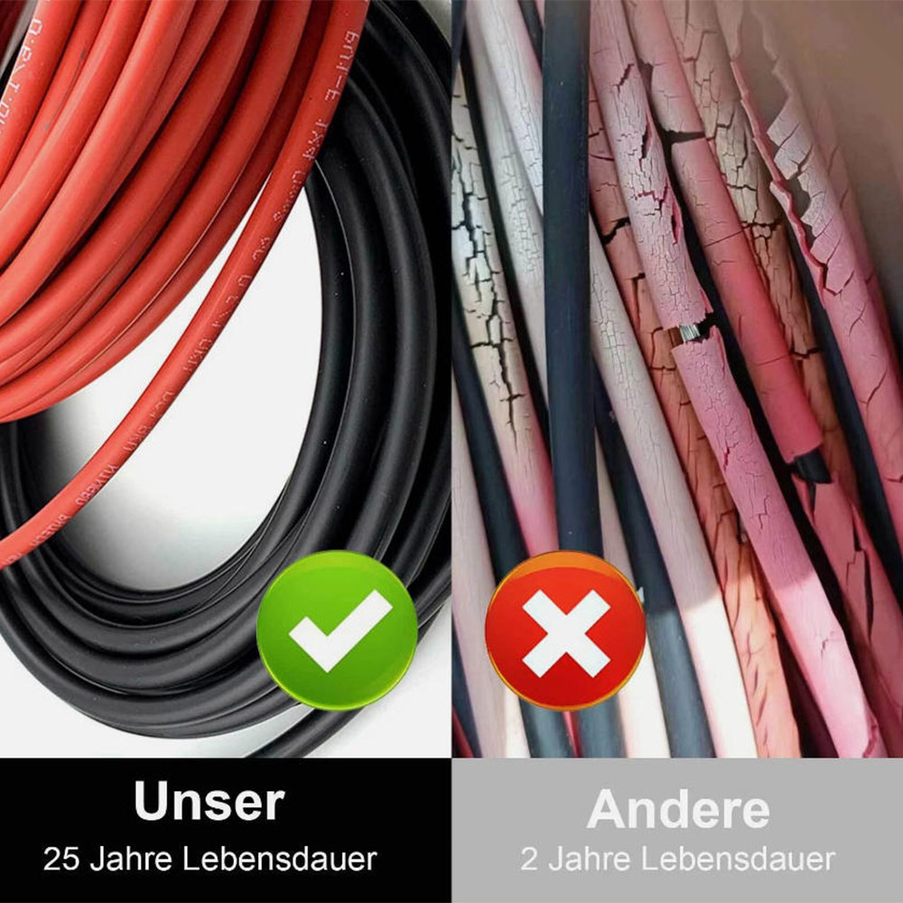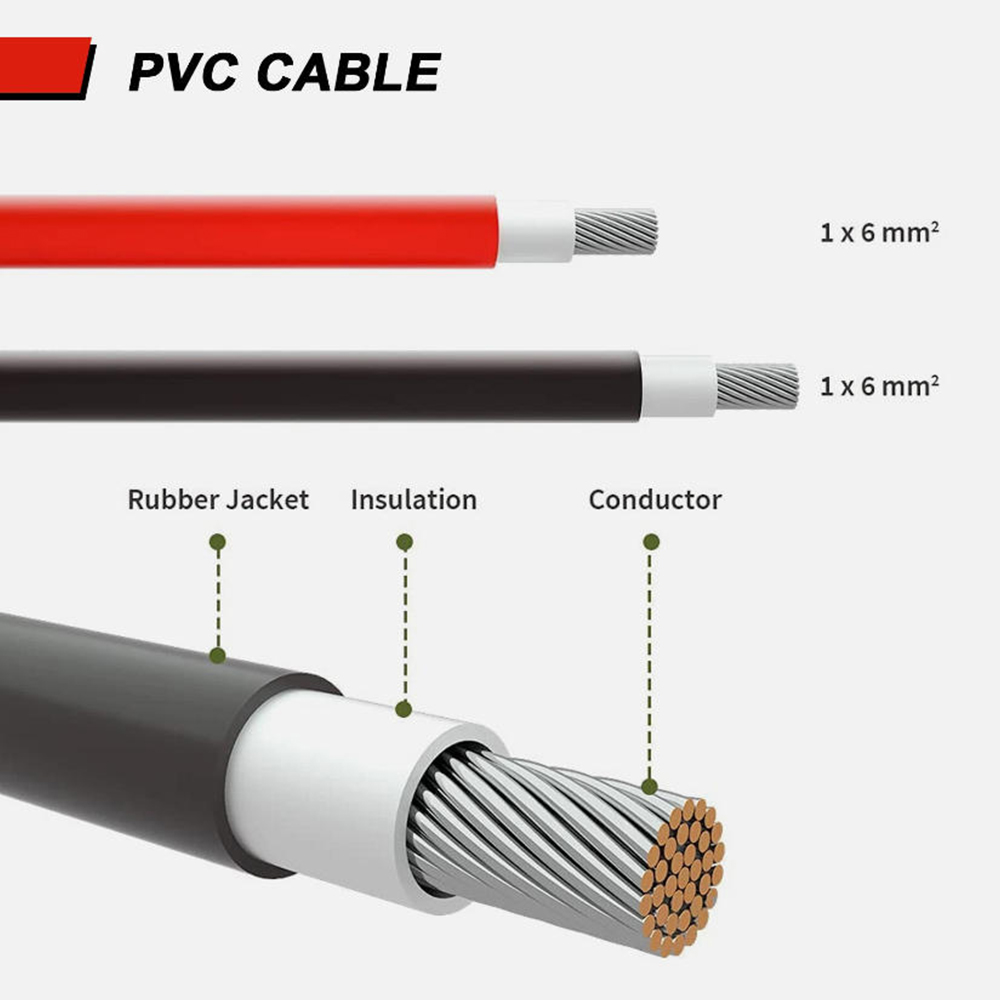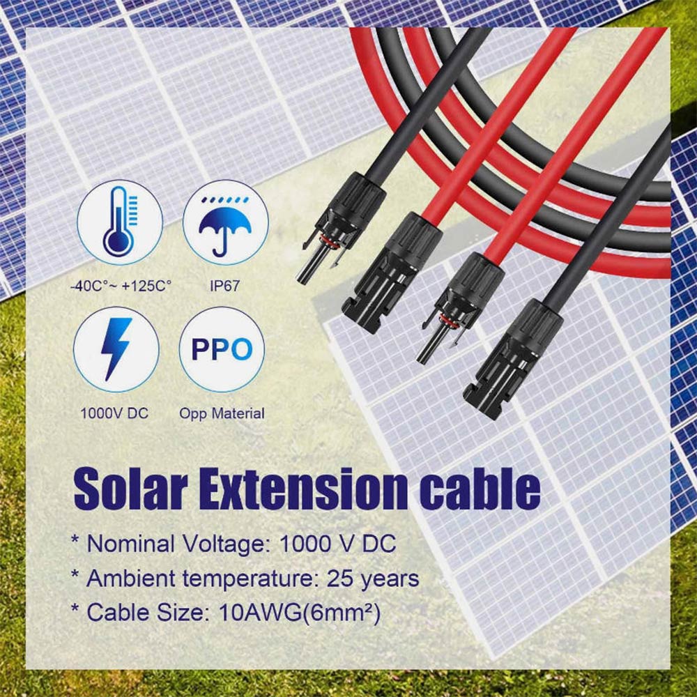 Featuring a **thick 10AWG (6mm²) copper core**, this cable minimizes power loss during transmission. Ensure every watt your solar panels generate reaches your battery or inverter with minimal waste—optimizing your system’s energy output.