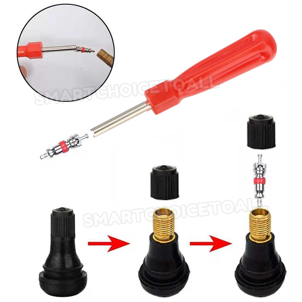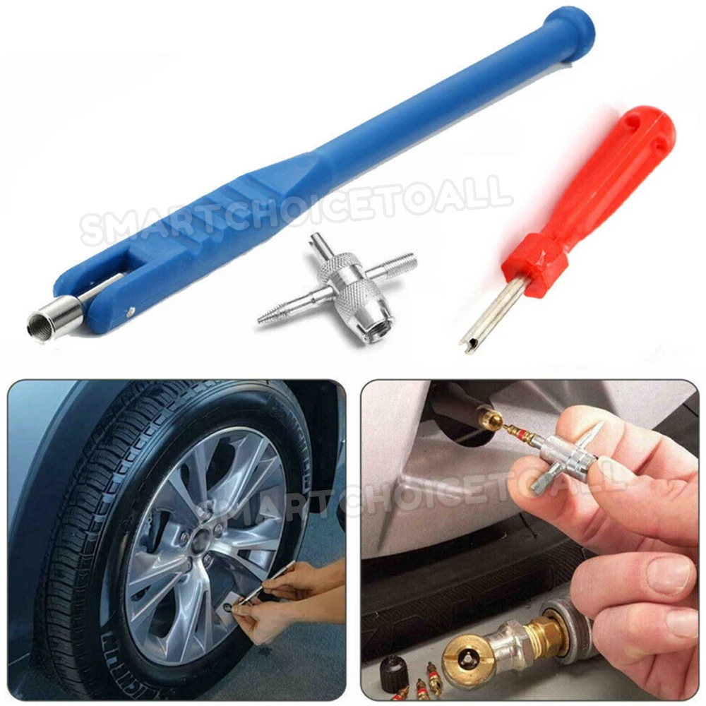 - This tire vale repair kit contains tire valve puller, tire valve core remover, tire valve repair tool.