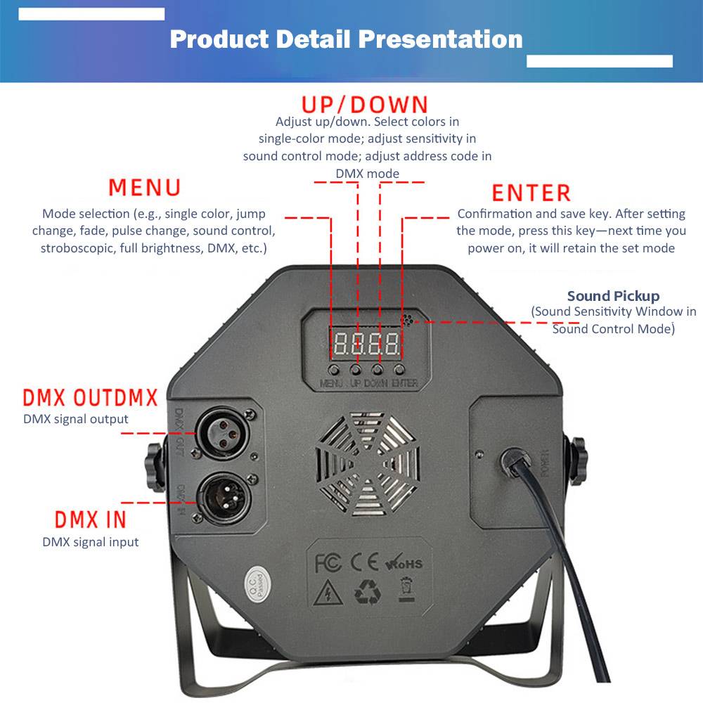 【DMX Available】The par lights work with DMX. Connect the par lights to the DMX system with DMX cable( cable not included) and operate with remote