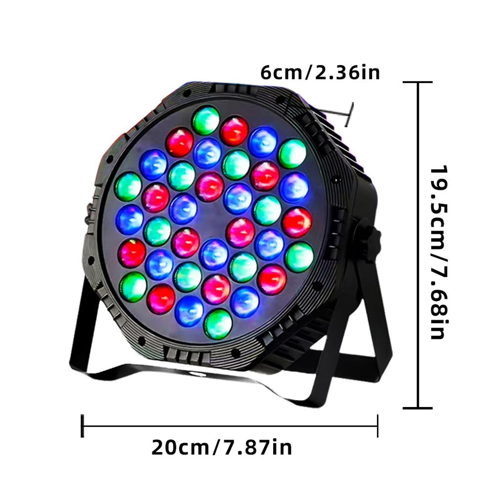 【Better Material and Longer Life】The stage lights are made of 36 high quality LED with higher brightness,higher stability and lower power consumption.The light cover is hexagon lens design with wider and more beautiful lighting effect.The cable is made of thicker copper which is more safe and longer life