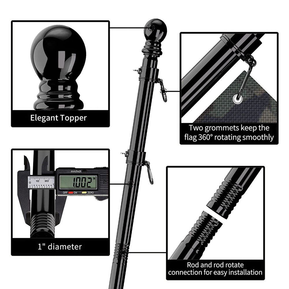 【Compatibility】This flagpole can lock flags of different sizes, suitable for 2x3, 3x5, 4x6 inch flags of different sizes.