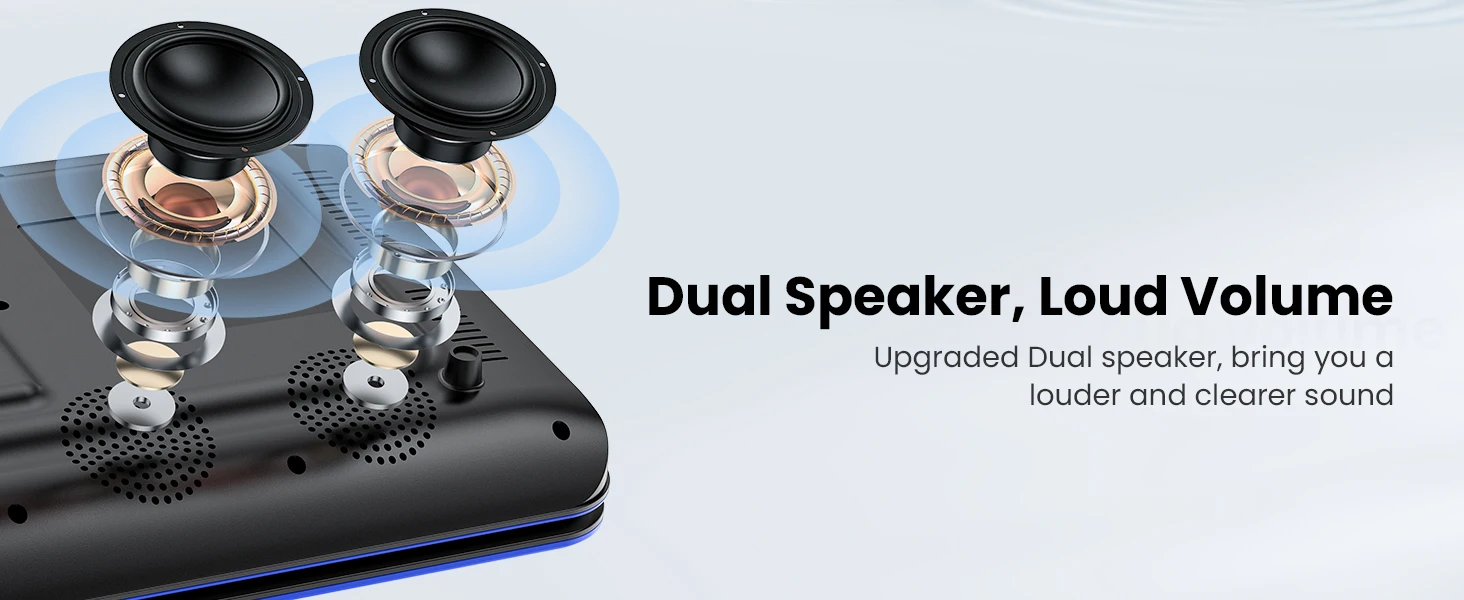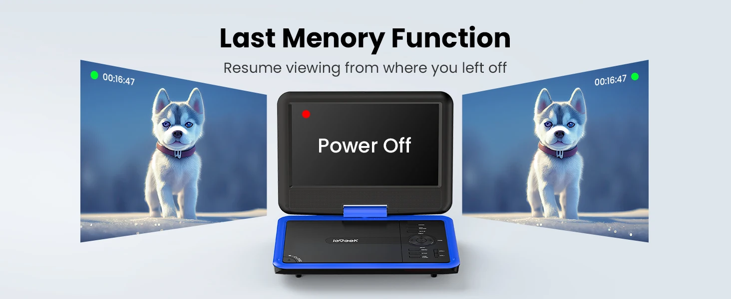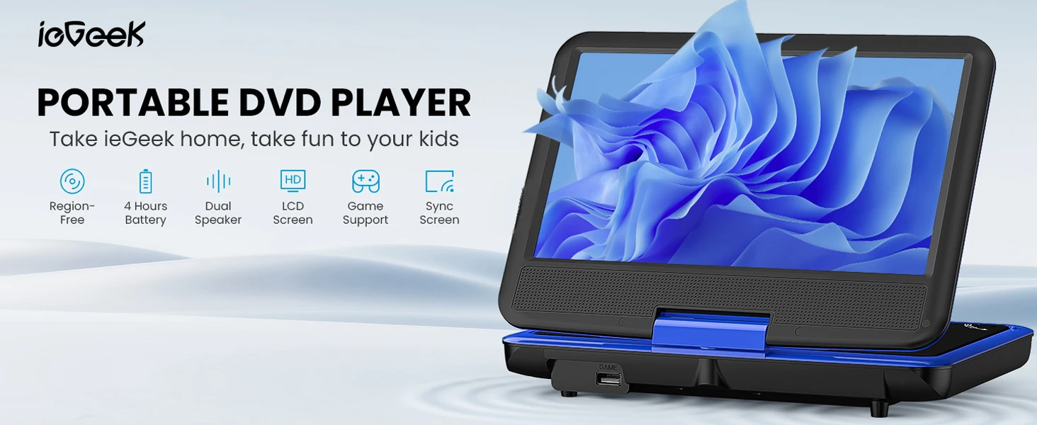 👨👩👧 Sonorous and Loud VSonorous and Loud Volume ---- ieGeek portable DVD players equipped with two high-power speakers, which makes the volume louder and clearer. Not enough? There is a 3.5mm earphone jack on the right side of the player so that you can get a concentrated and clear sound.