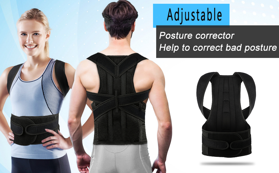 back support Just pull or loosen the Velcro straps to fit snugly against your body for best results. 【Unisex and easy to wear】Our back support strap includes two adjustable shoulder straps to fit the waist. The following steps are easy to put on the posture corrector by yourself:1. Just put on the posture corrector. 2. Pull on the elastic strap and attach the Velcro to the waistband. 3. You will feel a stretch in your shoulders and back.