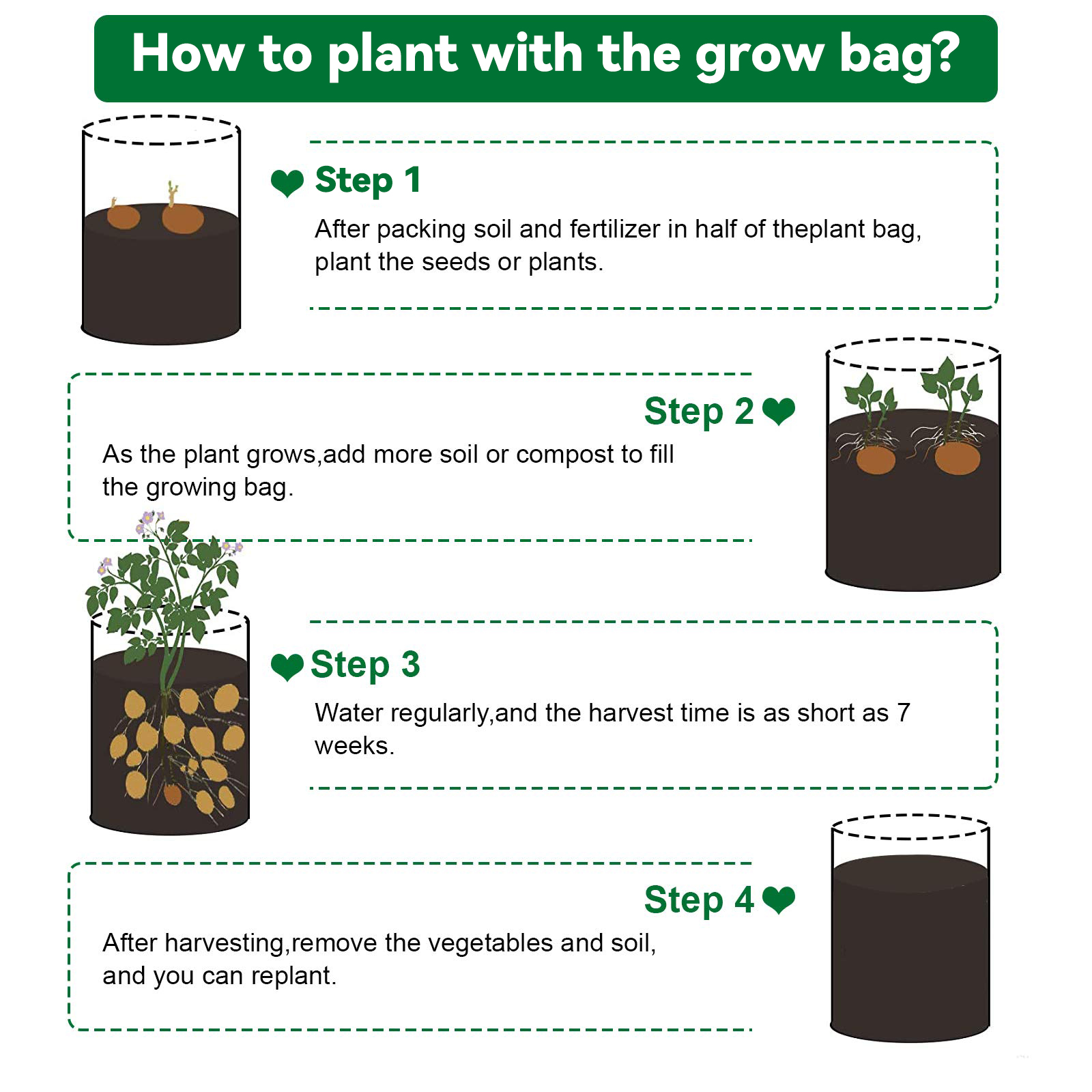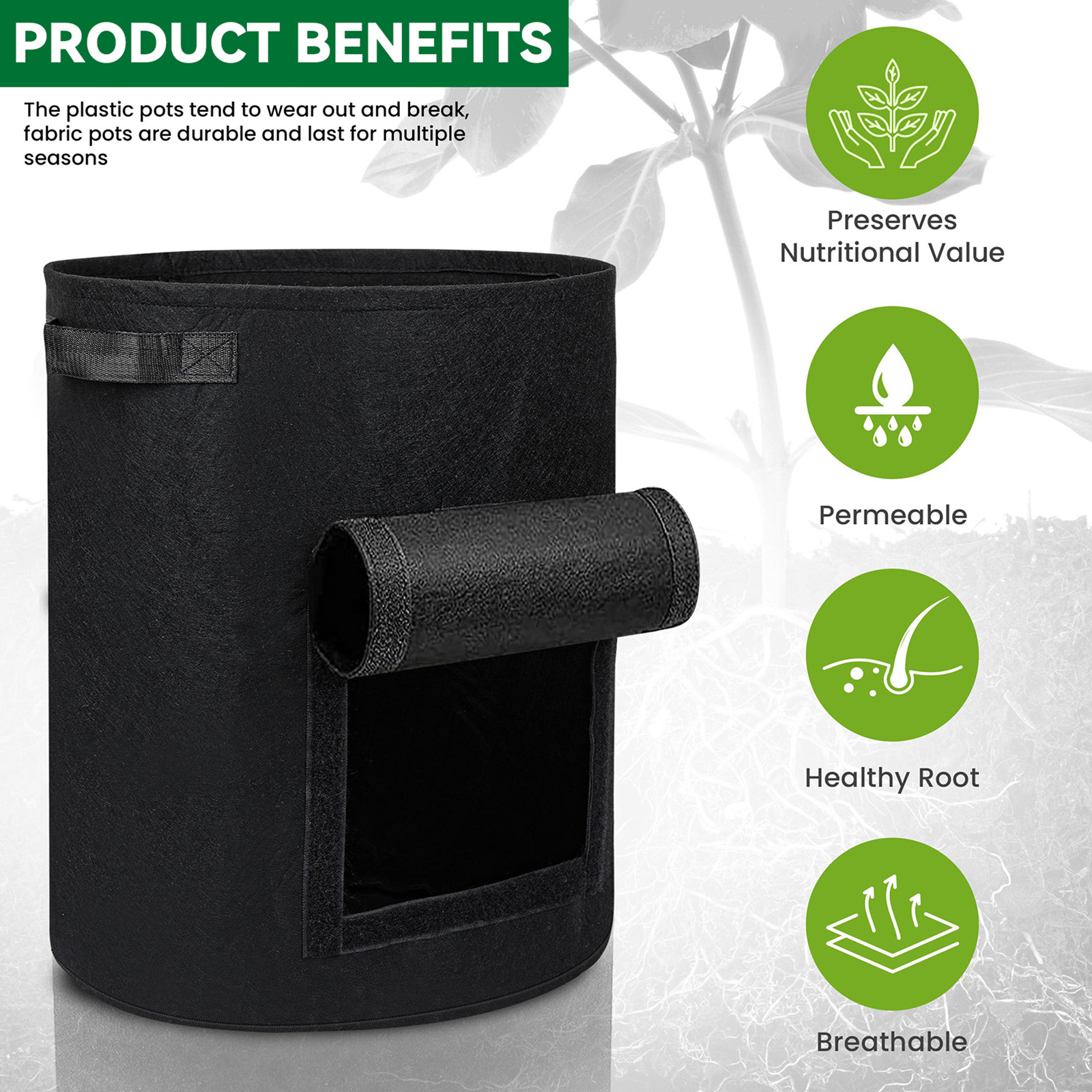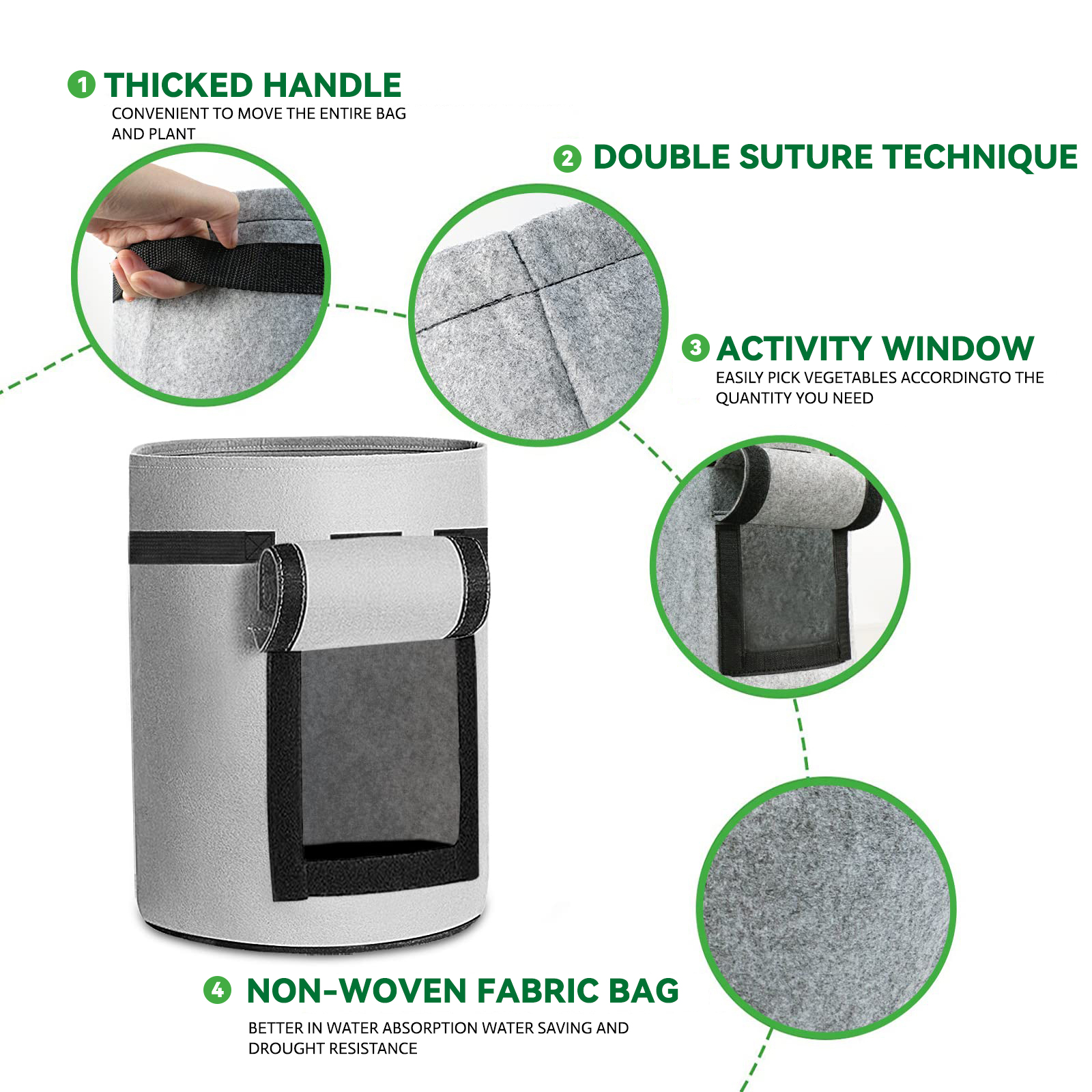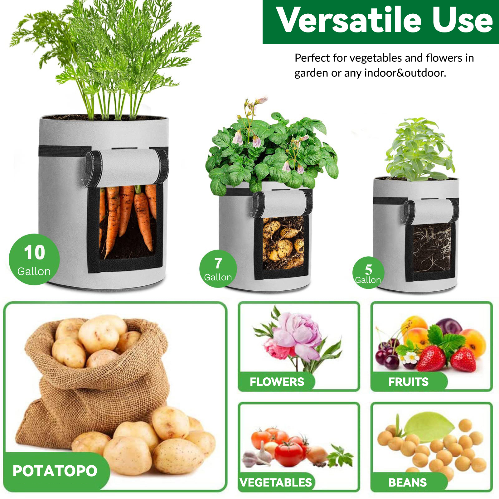 - Bearbeitungszeit: 3 Werktage Kartoffel-Anbaubeutel mit Klappe, 5/7/10 Gallonen, Pflanzen-Anbaubeutel, verdickter Vlies-Belüftungsbehälter mit stabilen Griffen, Gartentöpfe, Gemüse-Anbaubeutel für den Anbau von Kartoffeln, Tomaten, Erdbeeren Beschreibung: Merkmale: 【Langlebiges Premium-Material】 Das Material besteht aus atmungsaktivem, doppellagigem Vliesstoff und besteht aus strapazierfähigem Filz. Der Vliesstoff sorgt dafür, dass die Töpfe kein überschüssiges Wasser zurückhalten, sodass Ihre Pflanzenwurzeln atmen können, was zu einem gesünderen und kräftigeren Wachstum führt. atmungsaktiv, langlebig, wassersparend, wiederverwendbar und verursachen keine Umweltverschmutzung. 【Leicht zu bewegen】 Mit einem starken Griff können Sie ihn je nach Bedarf leicht bewegen. Diese Kartoffelanbaubeutel eignen sich perfekt für den Einsatz auf Terrassen, Gärten, Balkonen, Wintergärten und allen Innen- und Außenbereichen. Sie können zum Anbau von Kartoffeln, Zwiebeln, Taro, Radieschen, Karotten und anderem Gemüse verwendet werden. 【Praktisches Design】 Der Pflanzenzuchtbeutel verfügt über ein Sichtfenster mit Klettverschluss, durch das Sie nicht nur überprüfen können, ob Ihre Pflanze reif ist, sondern Sie können durch das Fenster auch problemlos Pflanzen ernten, mit einer Klappe, die Ihnen hilft, Ihre Kartoffeln zu ernten, ohne die Pflanze zu beschädigen . 【Erfüllen Sie unterschiedliche Anforderungen】 10 Gallonen (38 l)/7 Gallonen (26 l)/3 Gallonen (15 l), verschiedene Kapazitätsdesigns, um Ihren unterschiedlichen Bedürfnissen gerecht zu werden, können direkt ein einzelnes Gemüse oder eine gemischte Pflanze mit verschiedenen Gemüsesorten anbauen. Handelt es sich um einen Pflanzbeutel für Kartoffeln oder einen Pflanzbeutel für Tomaten? Du entscheidest! Am Ende der Vegetationsperiode können Sie die Beutel leeren, einfach reinigen und trocken lagern. Die Taschen lassen sich leicht zusammenfalten und nehmen beim Verstauen nicht viel Platz ein. 【Breite Anwendung】 Unser Kartoffel-Anbaubeutel kann nicht nur zum Anbau von Blumen, Gemüse, Obst und anderen Pflanzen verwendet werden, sondern kann auch als Aufbewahrungsbeutel verwendet werden, z. B. zum Ablegen schmutziger Kleidung, zum Aufräumen von Werkzeugen und als Haustierbett. Spezifikationen: Zustand: 100 % nagelneu Material: Filz Farbe: Grau 5-Gallonen-Größe: ca. 30 x 25 cm / 11,8 x 9,8 Zoll 7-Gallonen-Größe: ca. 35 x 30 cm / 13,8 x 11,8 Zoll 10-Gallonen-Größe: ca. 40 x 30 cm / 15,7 x 11,8 Zoll Verwendung: Outdoor, Indoor Besonderheit: Schnell trocknend, wiederverwendbar, wasserdicht, faltbar, tragbar, umweltfreundlich Lieferinhalt: 1 x Pflanzbeutel Hinweis: Die im Bild markierte Kapazität ist eine Referenz. Einzelheiten entnehmen Sie bitte der Beschreibung. ÜBER UNSDie Oberseite wird besonders angefertigt und Großverkauf durch Fabrik direkt mit Qualität, bevor Sie unseren Preis mit anderen Verkäufern vergleichen, dank betrachten unsere Qualität, Material mit Qualität werden benutzt. Unsere Preise sind nach sorgfältiger Kalkulation angemessen. FEEDBACK1, Wenn Sie aus irgendeinem Grund unzufrieden, bitte seien Sie nicht schnell, negatives / Nullrückgespräch hart arbeiten, um JEDEN KUNDEN sicherzustellen ZUFRIEDEN GESTELLTES 100% und jedes mögliches Problem für Sie zu lösen und immer positives Rückgespräch für alle unsere Kunden. KEHRT ZURÜCKFür alle Probleme, die von unserer Seite verursacht werden, werden wir 100% der Zahlung einschließlich der Versandkosten zurücksenden oder erstatten, nachdem wir innerhalb von 48 Stunden benachrichtigt wurden. Wir akzeptieren keine Rückgabe von 100% als Größenprobleme (bitte bestätigen Sie Ihre Größe, bevor Sie sie bestellen) Wenn Sie zurücksenden möchten, übernehmen Sie die Rücksendekosten.