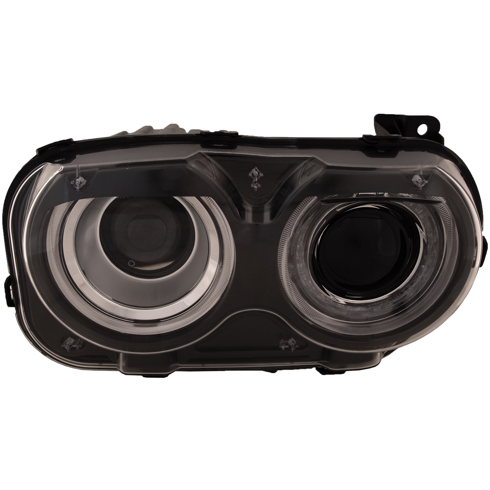 Upgrade the look and performance of your Dodge Challenger with the Headlights Depot 15-23 Right Passenger Side Halogen Headlamp. This aftermarket headlight is designed to fit perfectly on your Challenger, with a clear lens and black housing that will give your car a sleek and modern look. The assembly comes with halogen bulbs already installed, so you can enjoy improved visibility and driving safety right out of the box. This headlight is a direct fit replacement, so installation is quick and easy - you can use the existing hardware and wire harness to save time and money. Please note that this assembly does not have an air intake duct. With the Headlights Depot 15-23 Right Passenger Side Halogen Headlamp, you can upgrade your Challenger's style and performance with confidence.