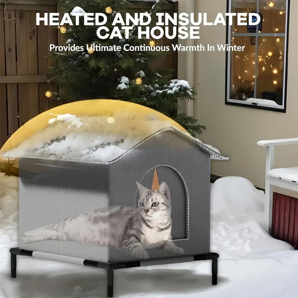 Made with waterproof fleece material to keep your pet dry and comfortable, even on rainy days. Durable construction offers a warm, secure shelter for outdoor use.