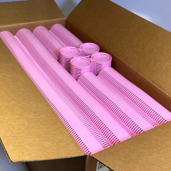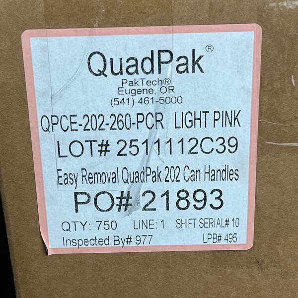 PAKTECH Plastic Can Carrier Condition: New Size: Fits Standard 202 Pack Size: 750 PACK Color: Light Pink MPN/Model: QPCE-202-260-PCR