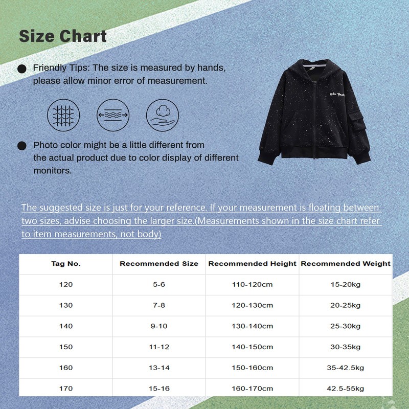 | 170 | 15-16 | 160-170cm | 42.5-55kg |