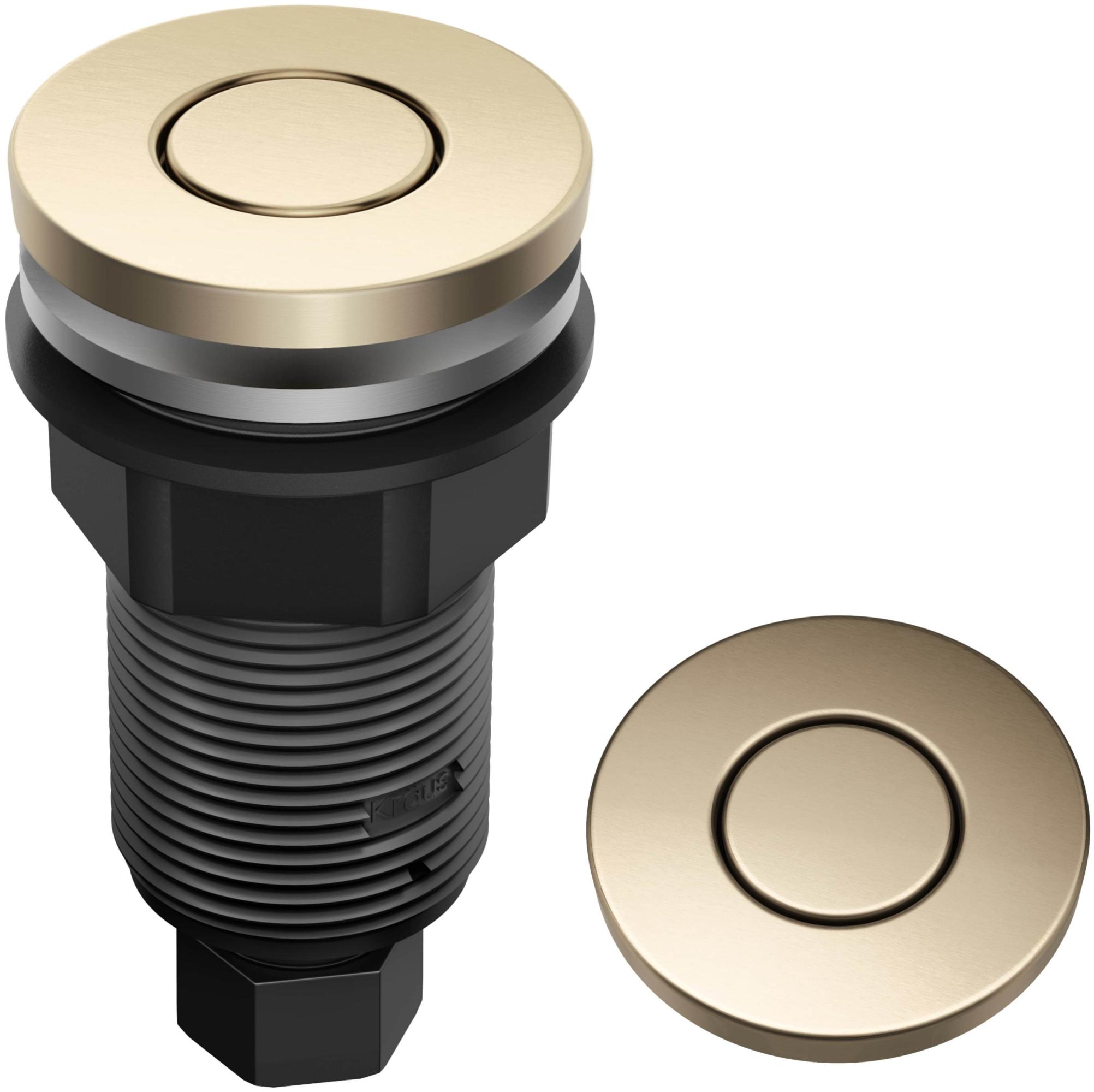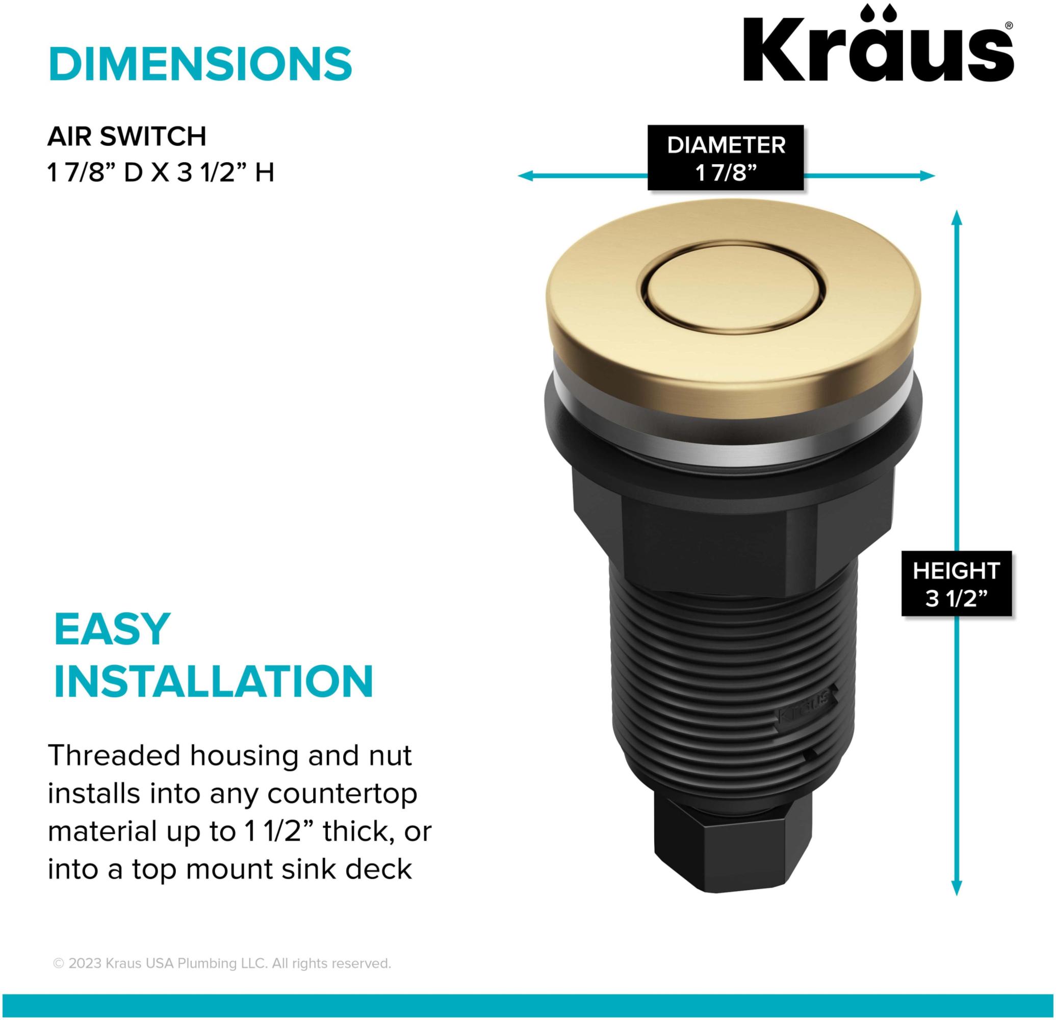 Item DescriptionThis garbage disposal air switch button has a universal design that works with all KRAUS air switch kits and garbage disposals. It's also compatible with most other air-activated switches and garbage disposal brands on the market. A functional alternative to traditional wall-mount switches, it allows you to activate your disposal with the push of a button. This replacement button comes in a choice of finish options that allow you to coordinate with your kitchen faucet, including finishes that resist water spots and fingerprints for easy cleaning. The streamlined flat-top design creates a clean and integrated look. The extra-long threaded housing can be installed into countertops up to 1 1/2” thick, or into a top mount sink deck with standard 1 1/4” soap dispenser accessory hole. Durable stainless steel and ABS construction helps ensure long-lasting operation. This air switch button is ideal for use on a kitchen island where it is not possible to place a traditional wall outlet to power a garbage disposal. Package includes air switch button ONLY – compatible with Kraus air switch kits.